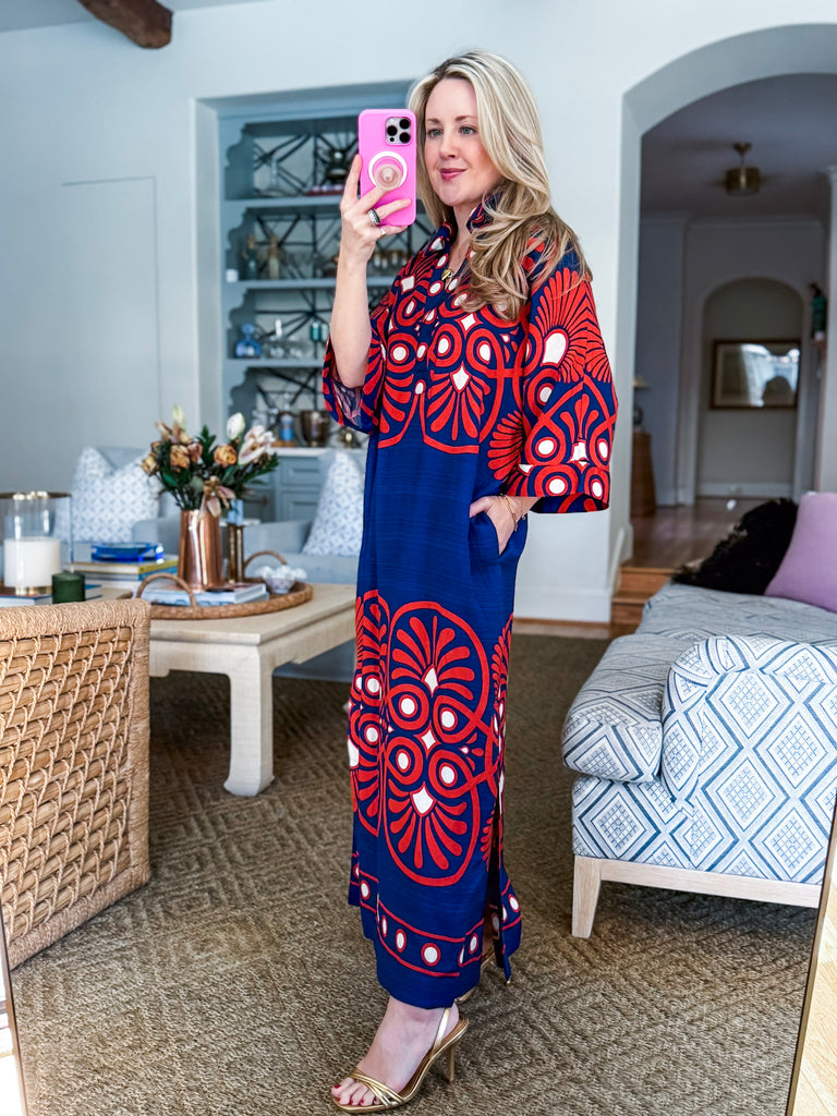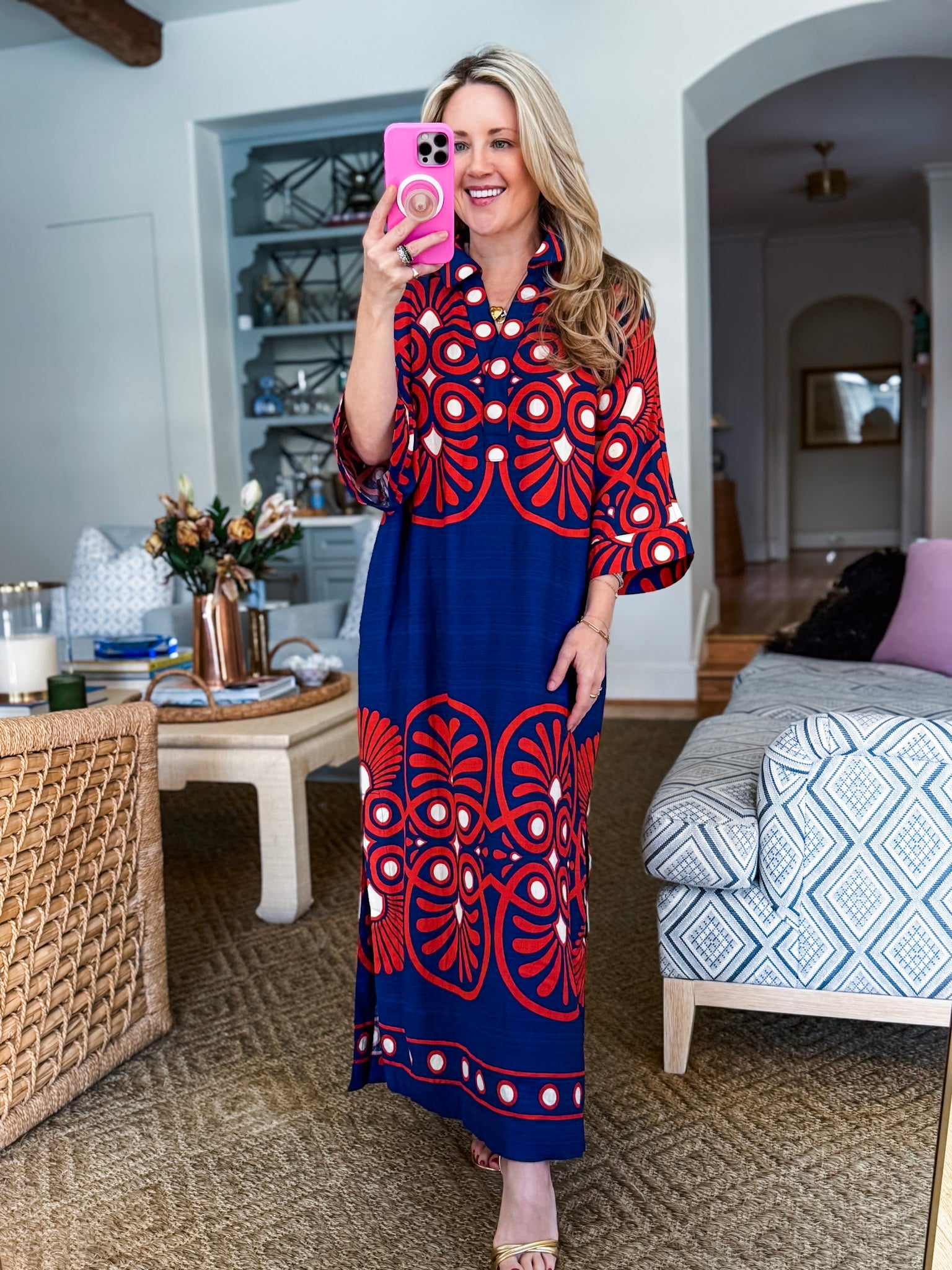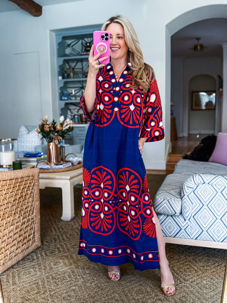 Bring on the color and confidence with the Geometric Time Midi Dress in navy! This flattering midi dress blends structure and softness with its notch collar and relaxed silhouette. Lightweight and fully lined, it’s ideal for those warm afternoon strolls or weekend get-togethers. Slip it on with sandals for a laid-back chic look!