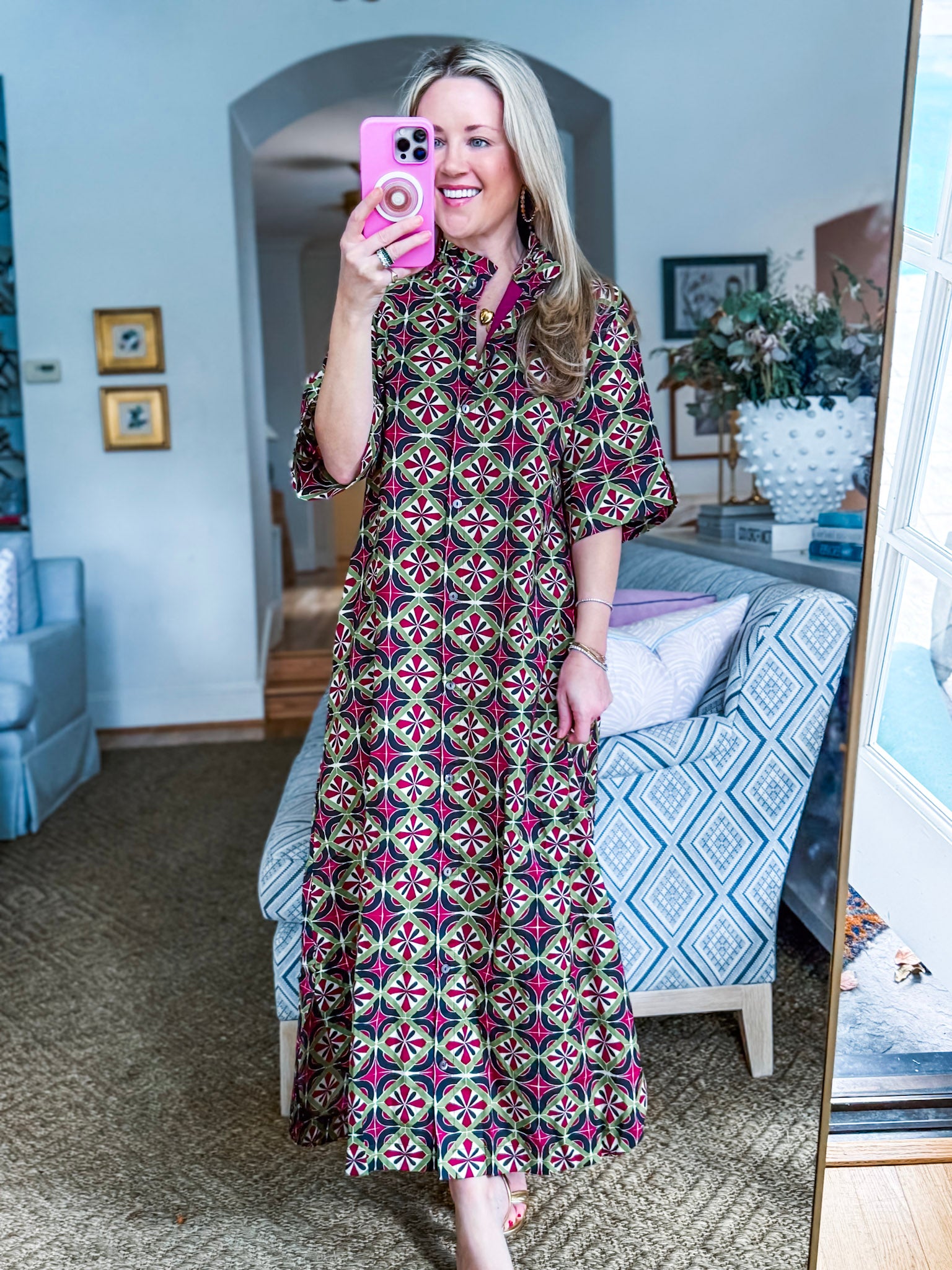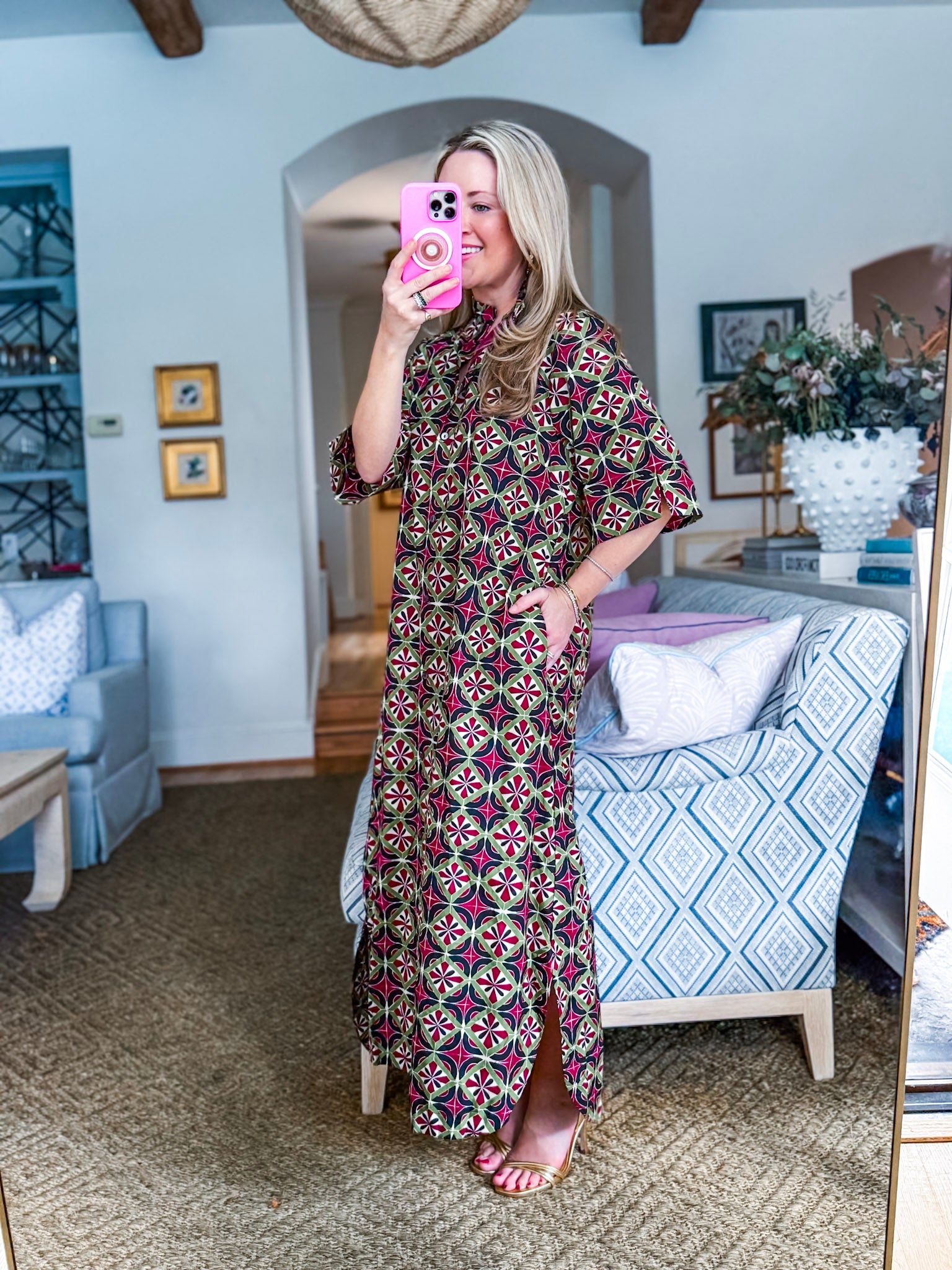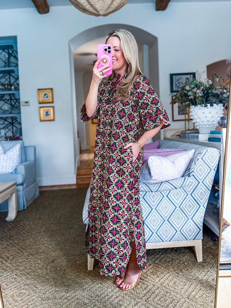 Soft, flowy, and full of charm! The Whispered Florals Midi Dress in wine is made for days when you want to look put together without even trying. The geometric print adds just the right amount of flair, and the side pockets keep it casual cool. Pair it with your favorite slides for errands or dress it up for dinner out. It’s that versatile!