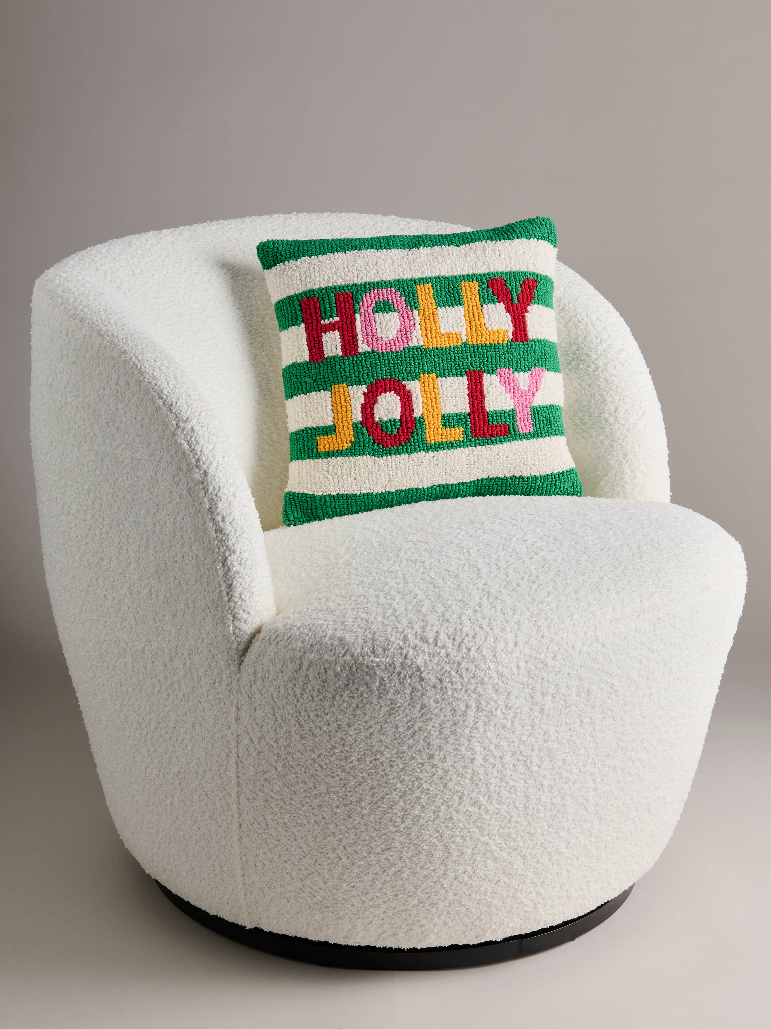 Add some cheer to your holiday décor with the "Holly Jolly" Tufted Pillow! Featuring bold lettering in festive shades of red, pink, yellow, and green, this pillow pops against its classic striped background. The textured tufted design adds cozy, handmade charm to any sofa, chair, or bed. It also comes with a removable polyfill insert for easy fluffing or storing when the season wraps.