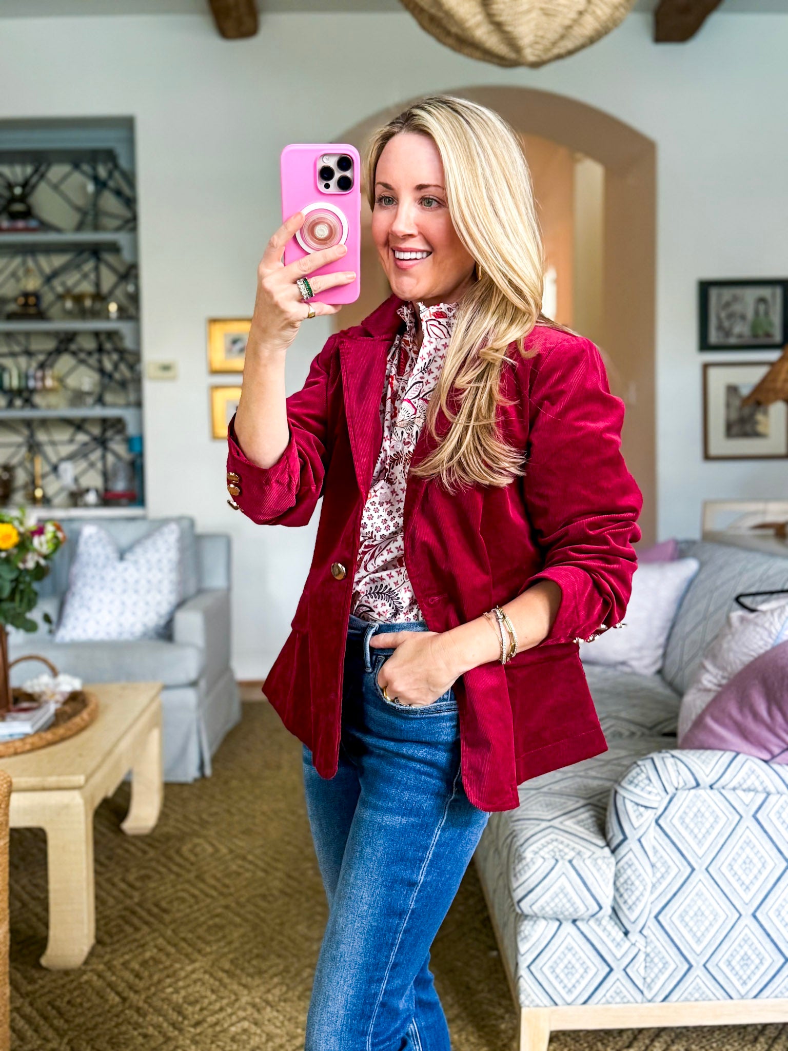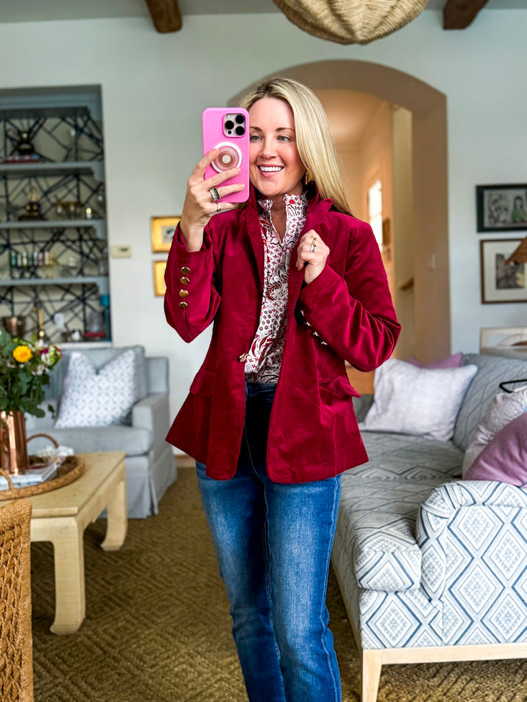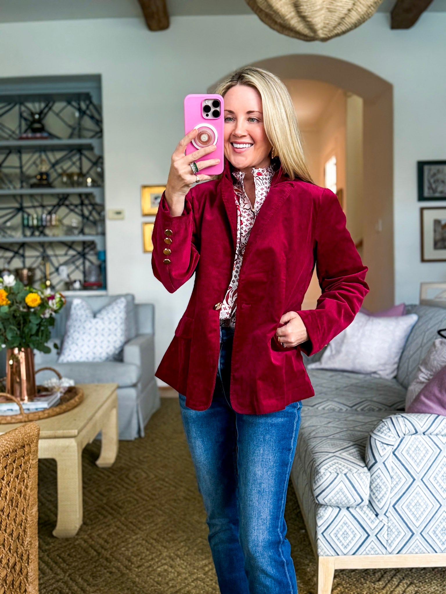 The Dedicated Details Corduroy Blazer in wine is your new go-to for polished layering. With gold button trims and soft corduroy texture, it blends timeless style with a modern edge. Perfect for office days, coffee catch-ups, or an elevated weekend look. Just add denim or tailored pants and you’re set.