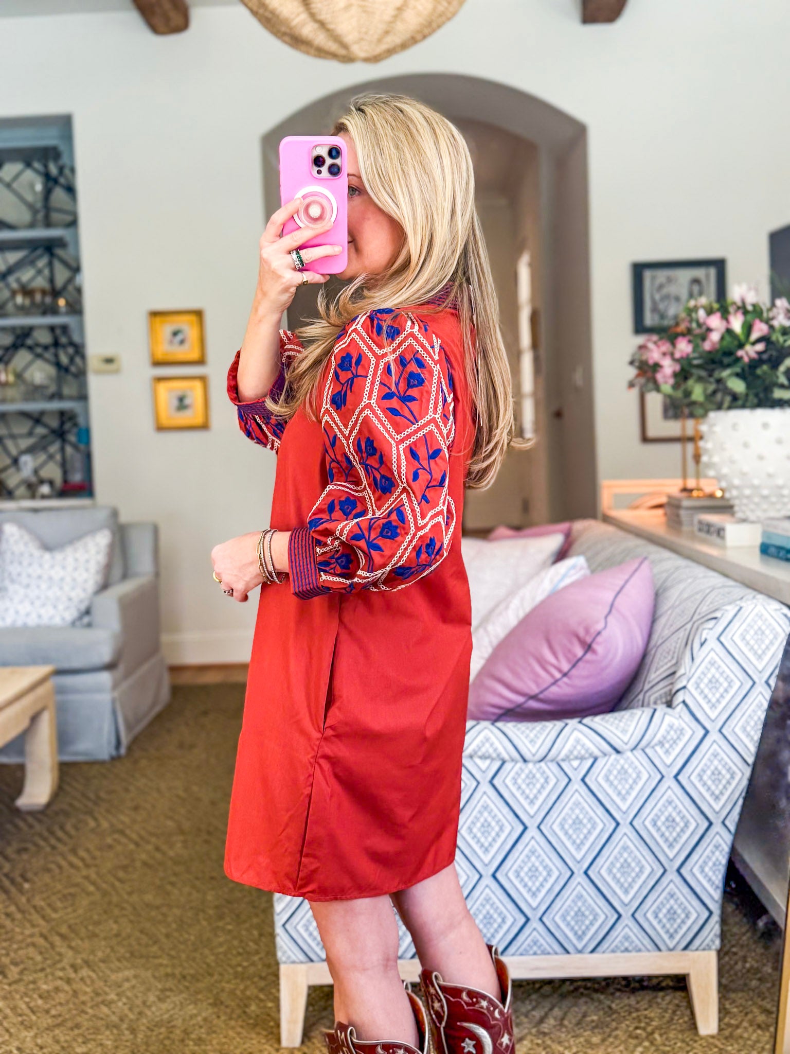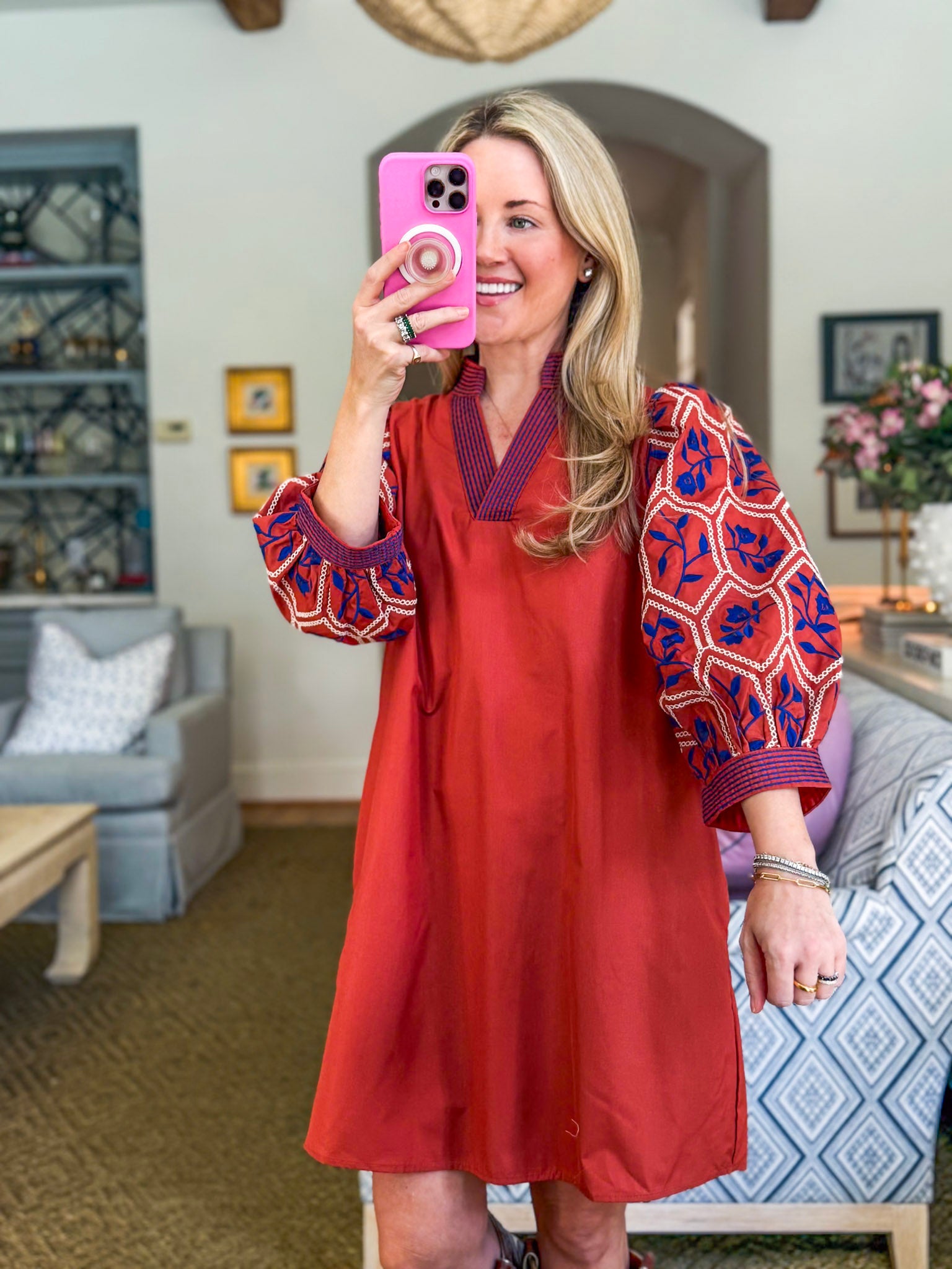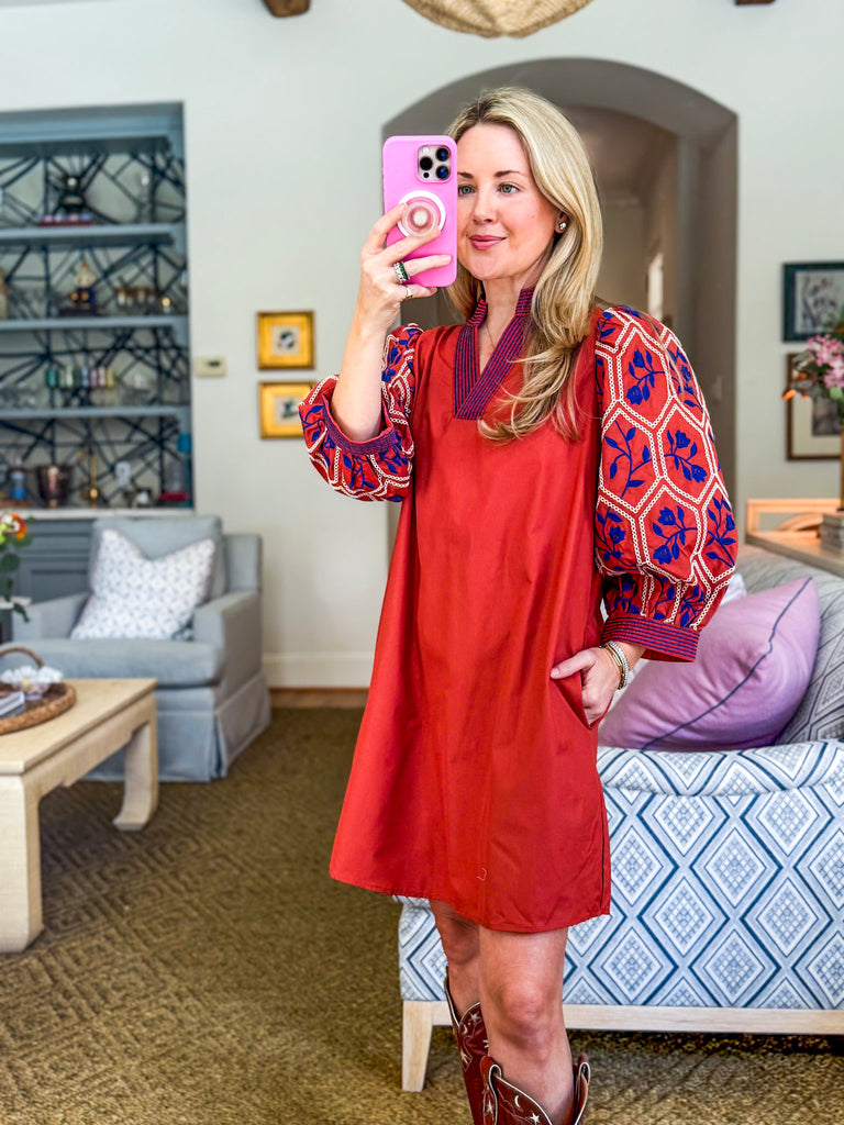 The Autumn Frills Mini Dress in rust is the perfect mix of cozy and chic. With embroidered sleeves, contrast knit details, and subtle stitch accents, it’s designed to stand out without trying too hard. The side pockets add a touch of practicality while keeping the look playful. Ideal for fall dinners, casual Fridays, or a weekend out with friends.
