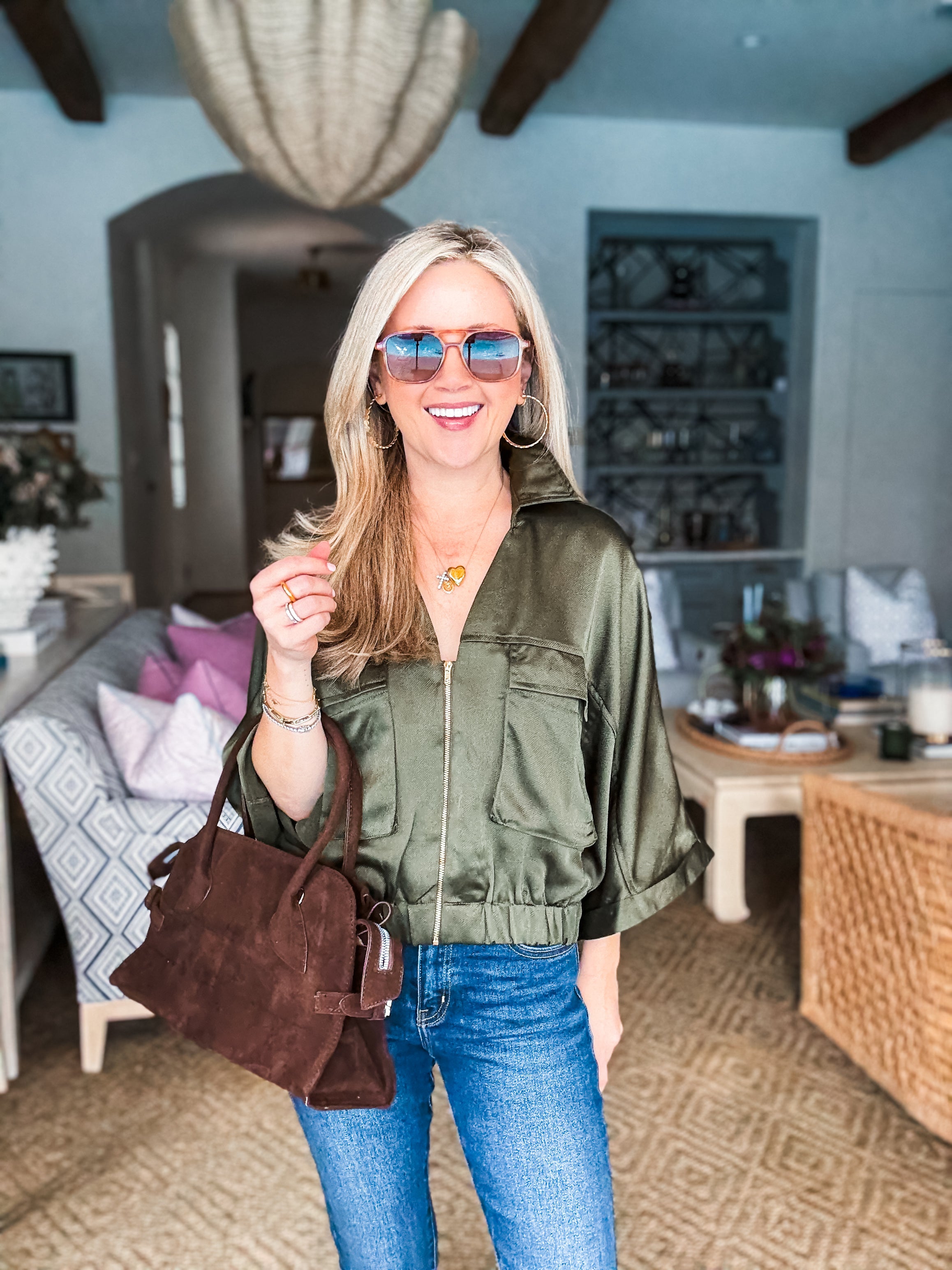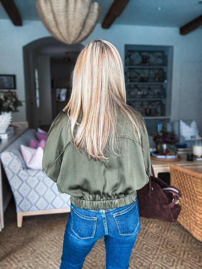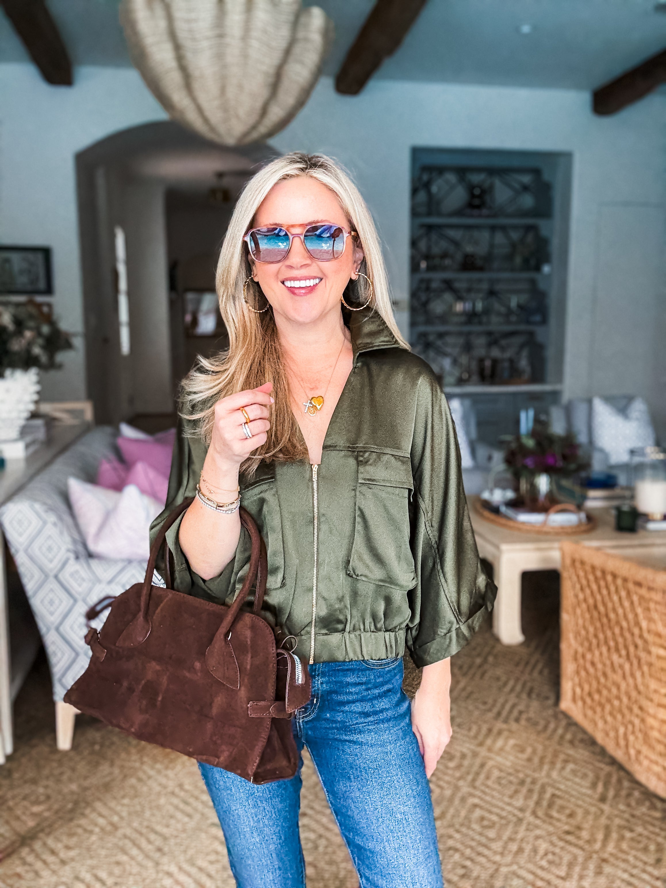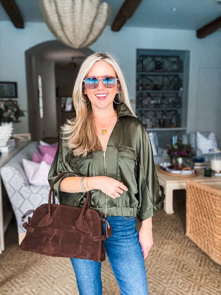 The City Sights Zipup Top in olive is made for women who love easy style with a little edge. The deep V neckline and front zipper add just the right amount of detail, while the relaxed sleeves keep it comfy all day. Toss it on for travel days, weekend getaways, or casual meetups. It’s that effortless look that always feels right.