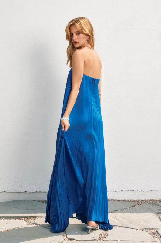 The Moonglade Pleated Maxi Dress in blue quartz is all about sleek elegance with a modern twist. Its V-cut tube neckline and pleated column design create a flattering silhouette that’s perfect for weddings, evening dinners, or formal celebrations. With soft boning in the bodice and an elastic back for comfort, it stays stylish without sacrificing ease. Finished with a hidden zipper and full lining, it’s effortless sophistication in one piece.