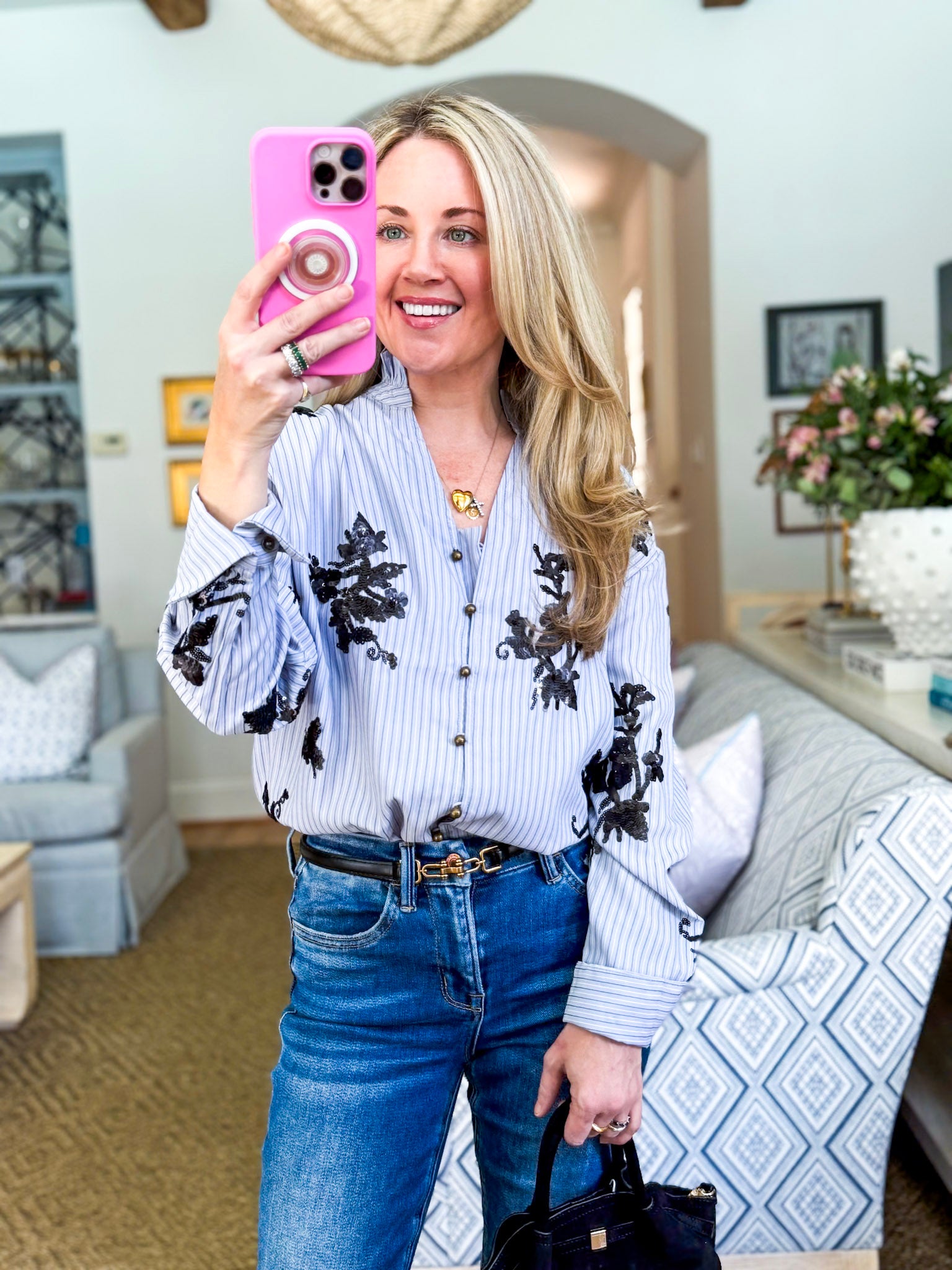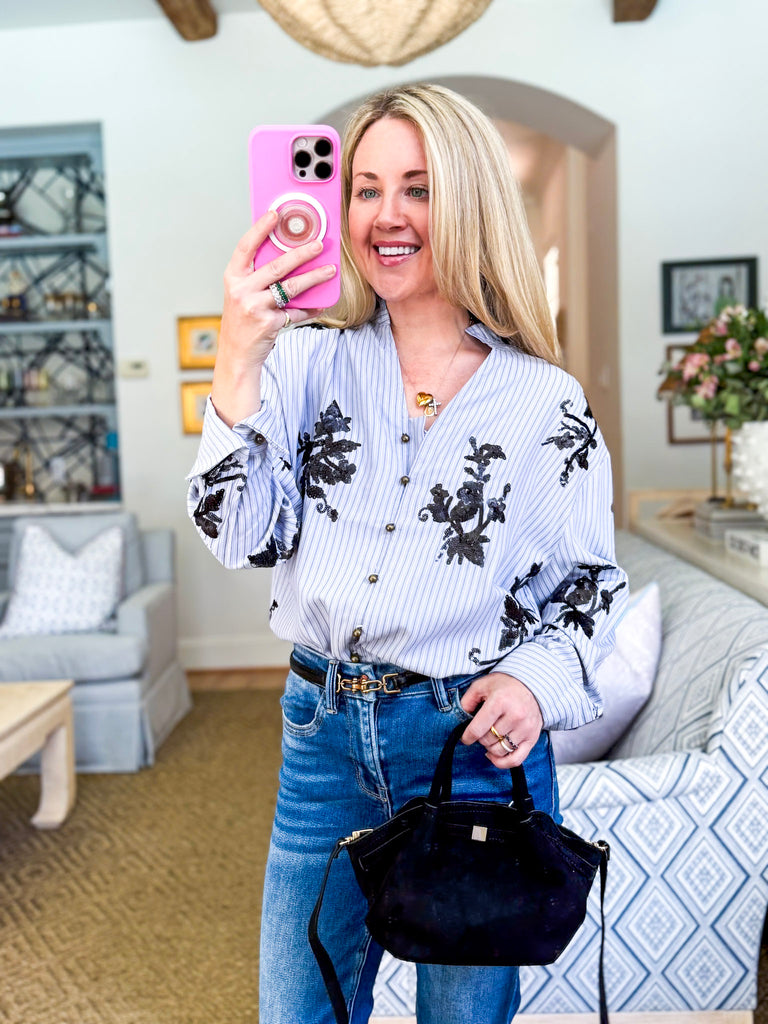 The True Connection Sequin Top in chambray is here to add a fresh twist to your style. Feminine ruffles, floral details, and timeless stripes make it a standout piece you can wear anywhere. From morning coffee runs to dinner plans, this lightweight top keeps you comfy and stylish. It’s the kind of blouse that makes getting dressed feel fun again.