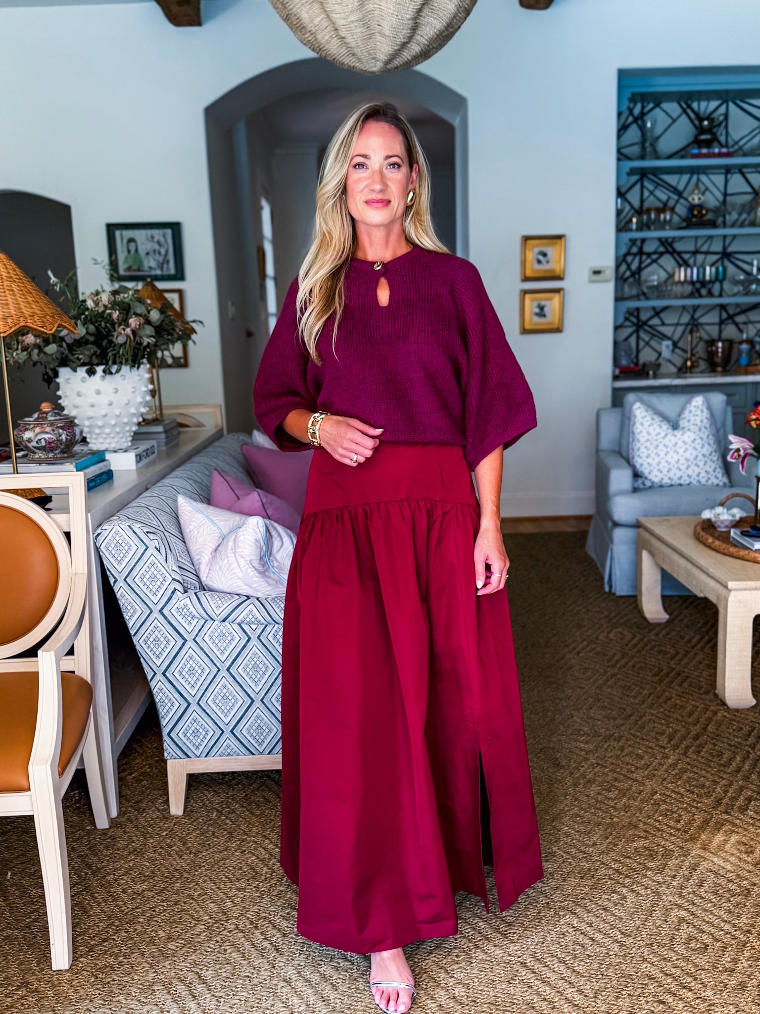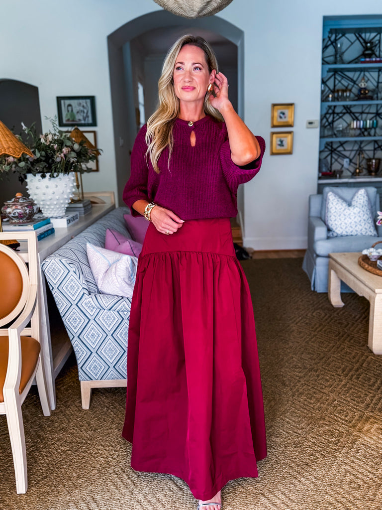 The Fit & Flare Maxi Skirt in wine brings classic femininity with a modern twist. Designed in an A-line shape with a smooth side zip, it flatters and flows in all the right ways. Perfect for coffee runs, dinner plans, or Sunday strolls. You’ll feel effortlessly confident wherever you go!