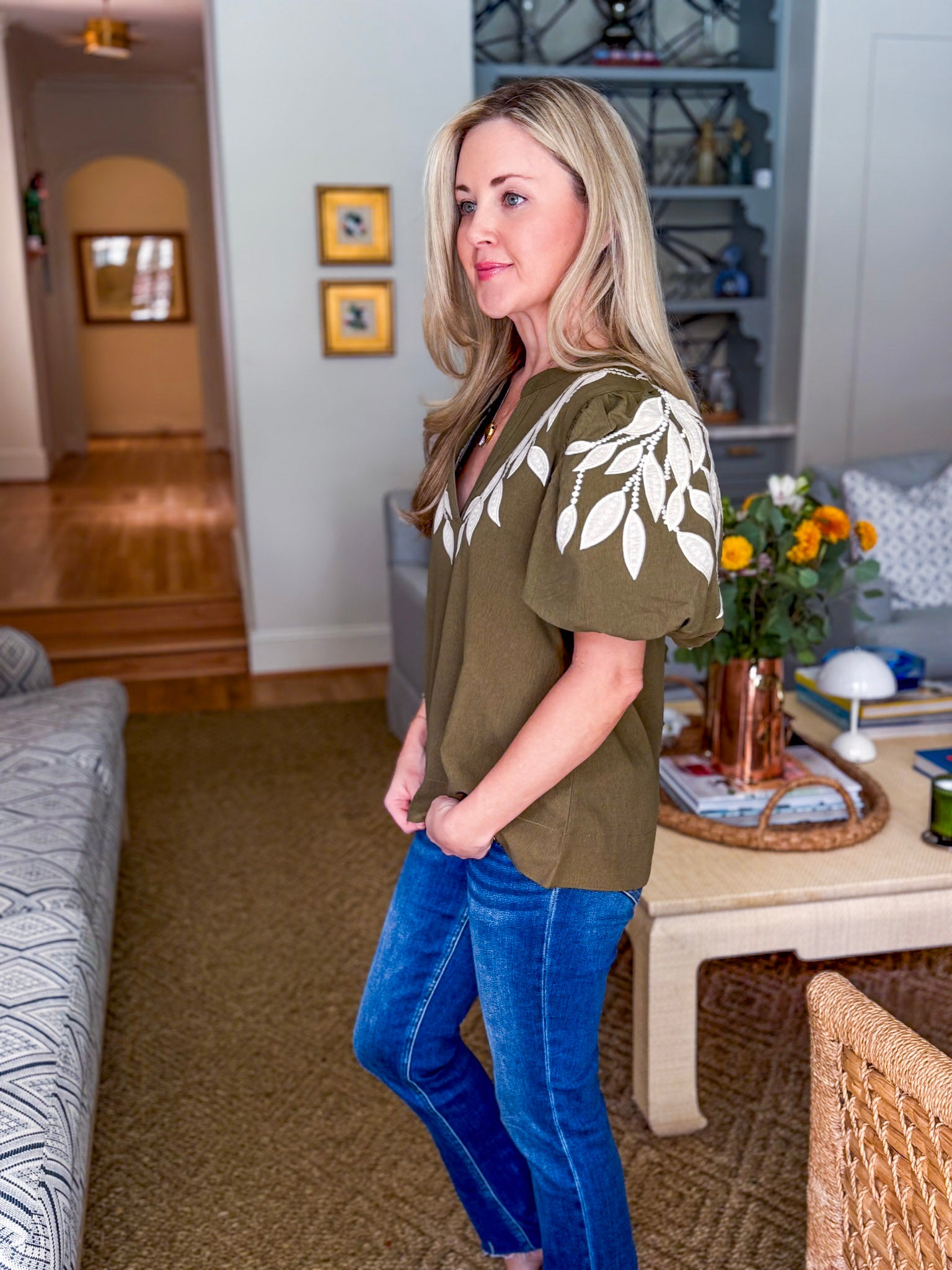 Light, breezy, and made to flatter, this Vintage Bungalow Embroidered Top in olive brings all the vintage vibes in the best way. Whether you’re heading to a casual meeting or catching up with the girls, the soft fabric and sweet details keep things chic and comfy. Just add gold hoops and a smile!