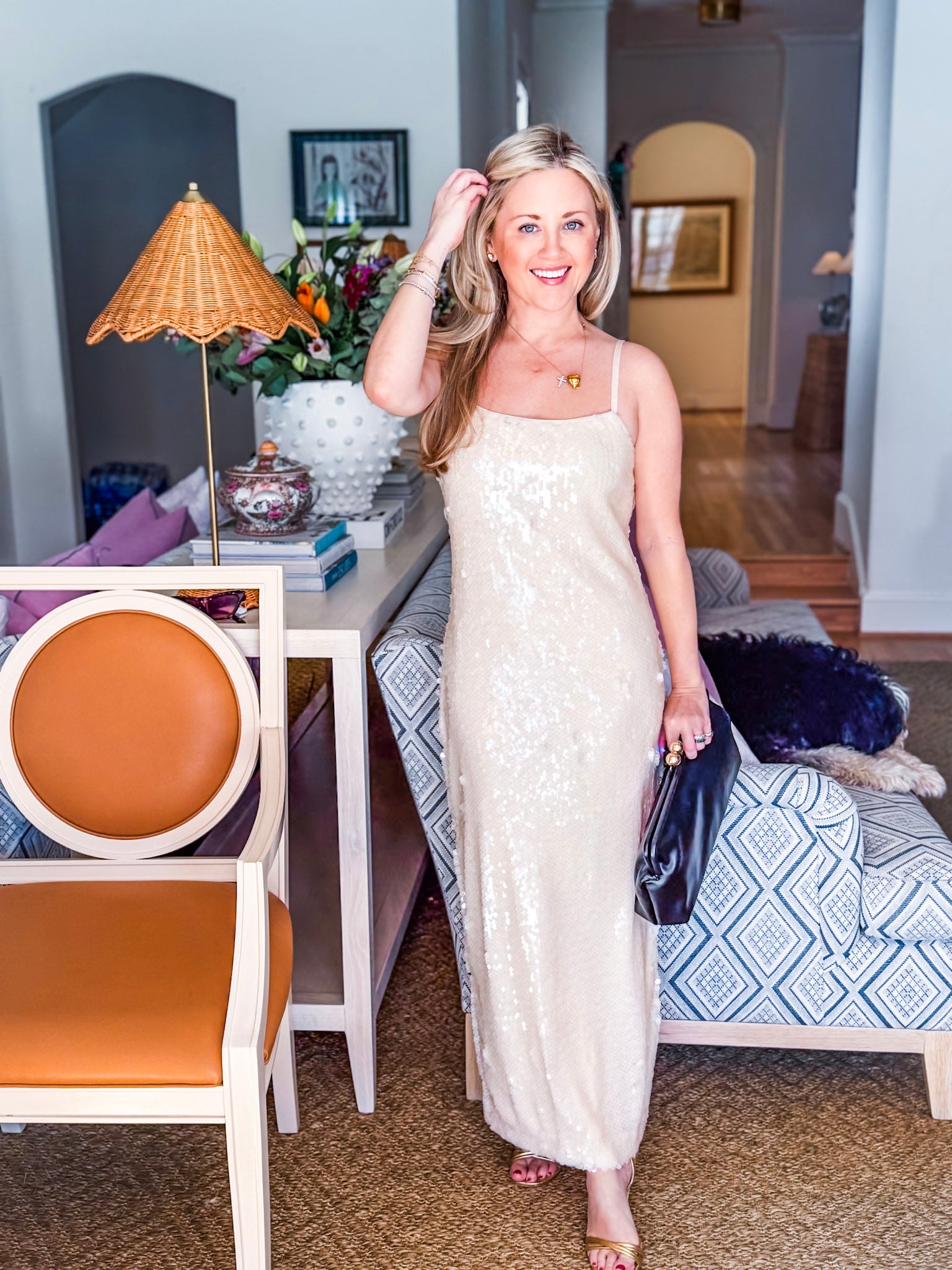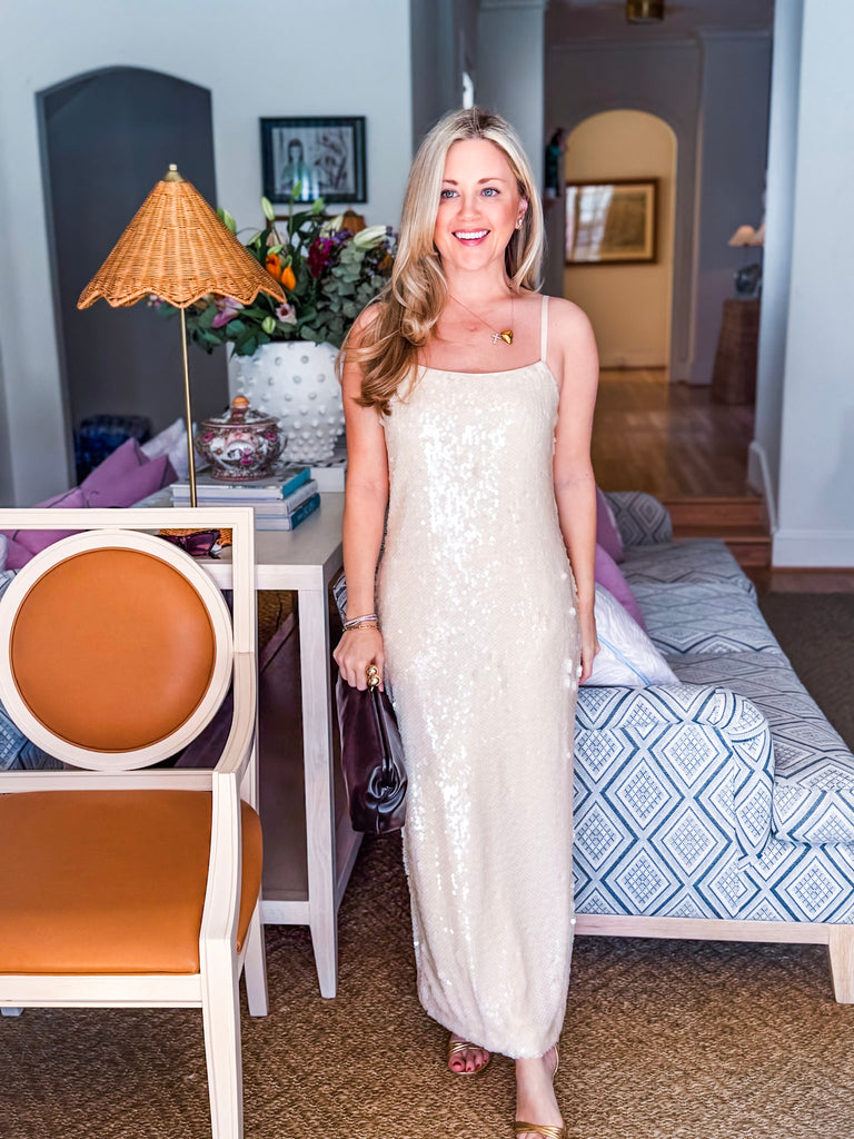 Slip into pure sparkle with Glam Girl Sequin Slip Dress in ivory that's ready to turn heads. Featuring a fitted silhouette, plunging V-back, and a cheeky side slit for movement, this sleeveless stunner comes with adjustable straps for the perfect fit. Whether you're hitting the dance floor or making a grand entrance, this dress delivers all the glam without the fuss.