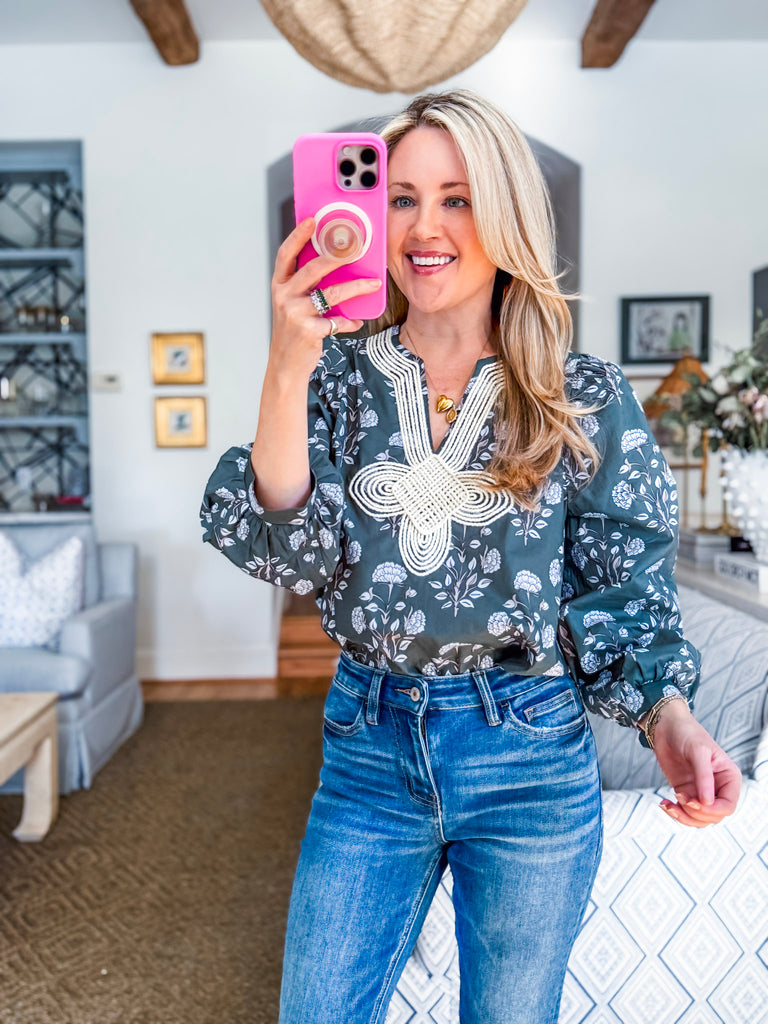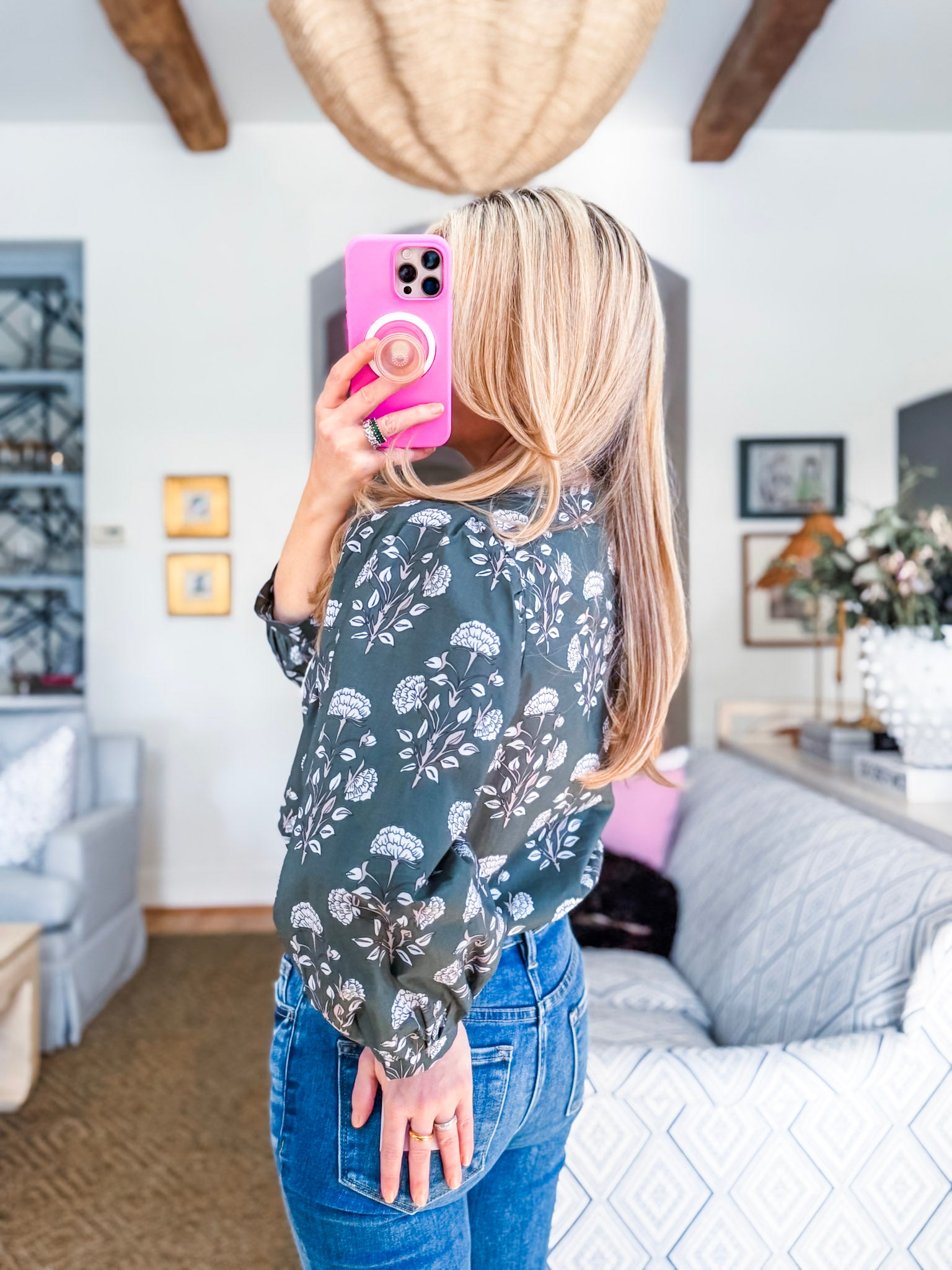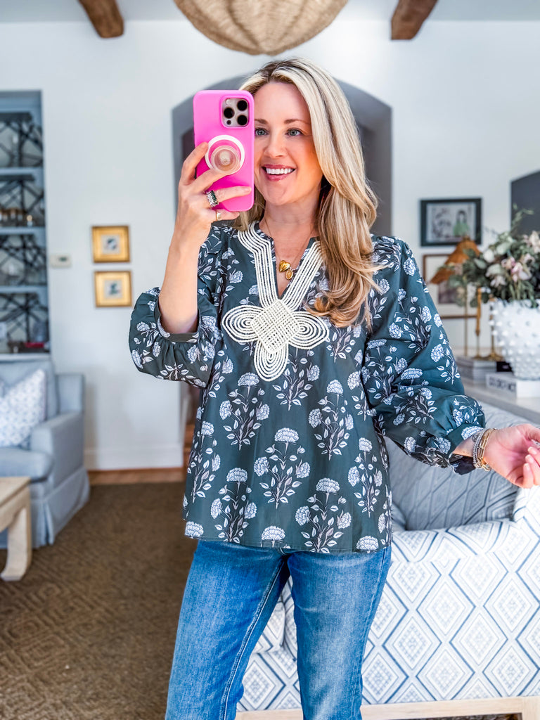 Fall in love with the flirty details of the Midtown Florals Top in moss. The floral print and puff sleeves make it sweetly romantic, while the embroidered V-neck gives it that boutique touch. It’s comfy enough for everyday wear but dressy enough for dinner plans. Style it with your favorite denim or midi skirt for an effortlessly chic look.