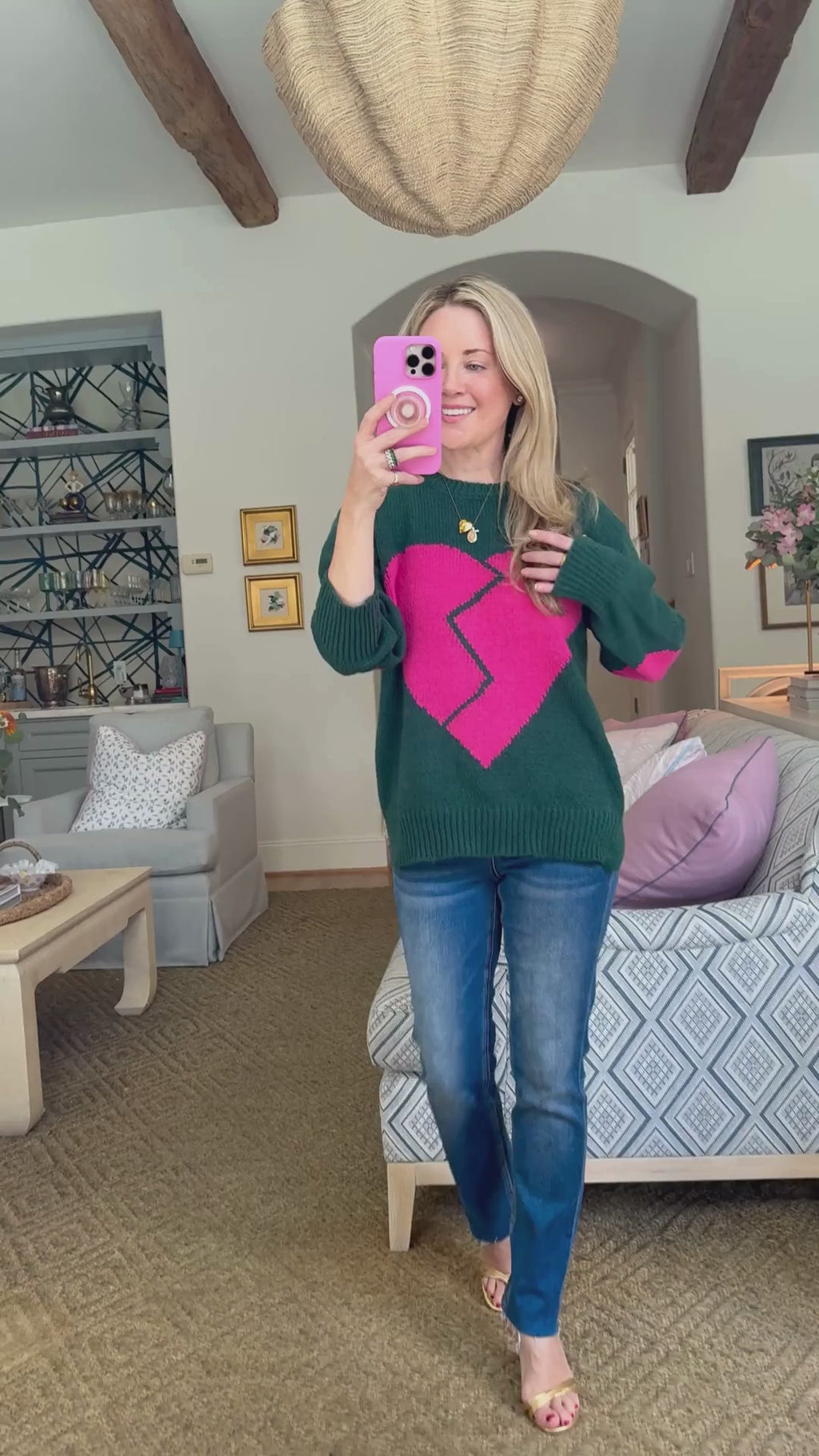 The Broken Heart Relaxed Sweater in emerald and pink takes comfy chic to a whole new level. Slightly oversized with side slit details, it drapes perfectly whether you’re lounging at home or heading out with friends. The graphic heart details add a sweet yet bold touch. It’s your new favorite sweater for looking stylish without even trying.