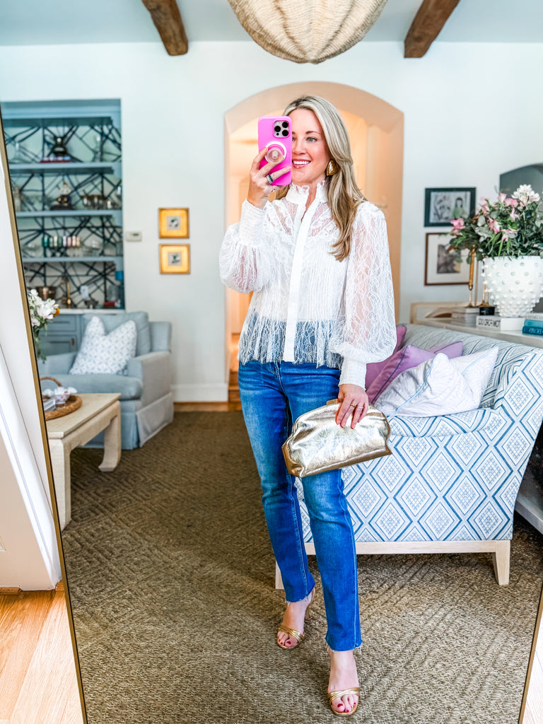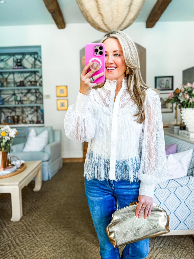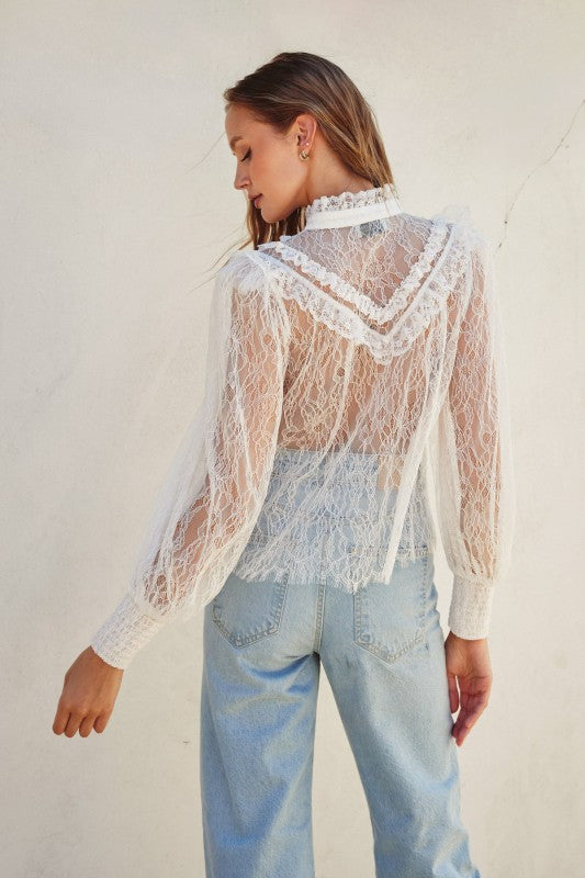 Meet the Frilly Lace Top in ivory – a dreamy mix of feminine charm and modern edge. With its structured shoulders and sheer lace detail, this blouse is all about making a statement without saying a word. Pair it with a cami and sleek jeans for date night or with tailored pants for a chic dinner look. It’s your go-to for when you want to feel effortlessly elegant.