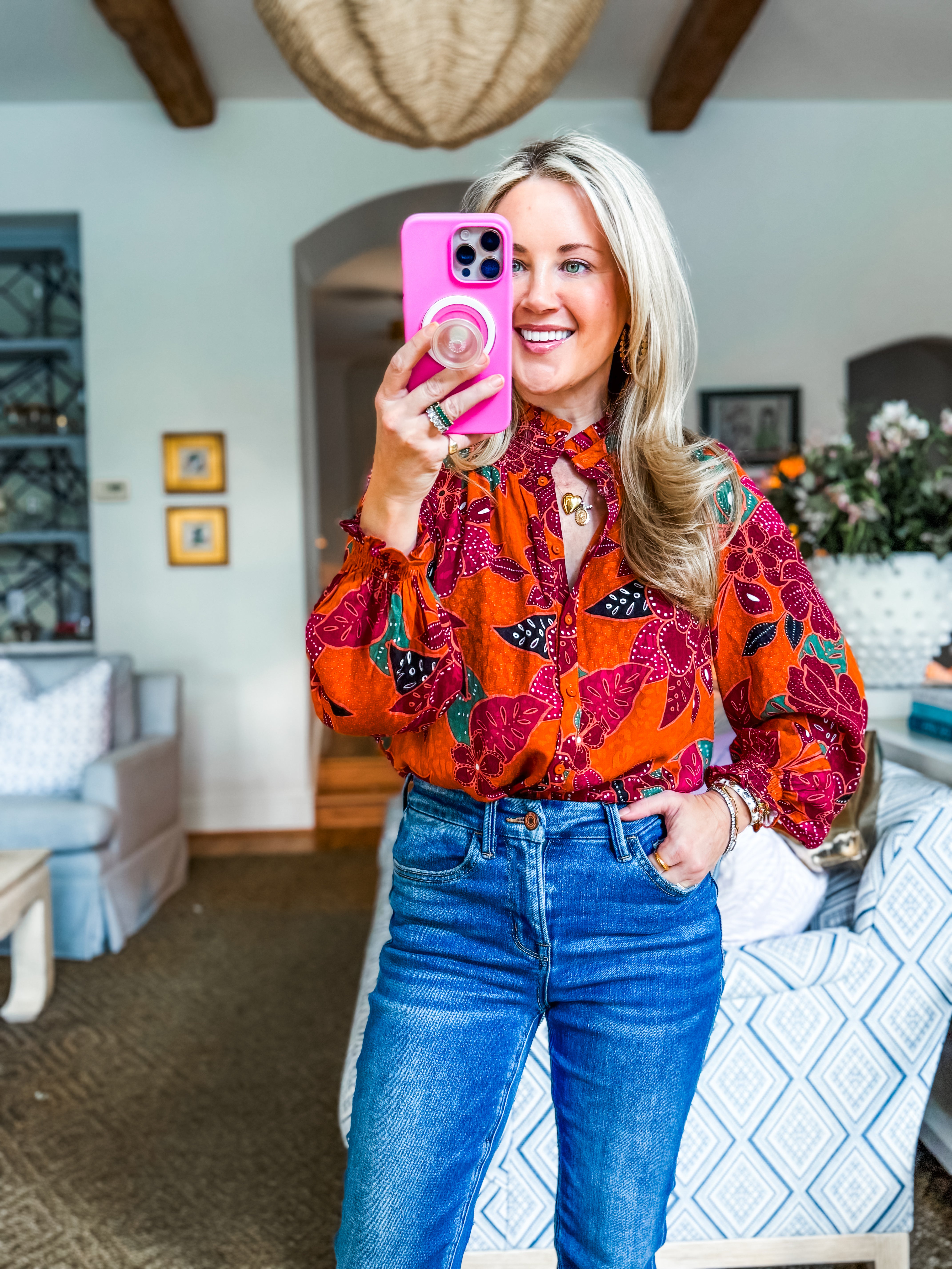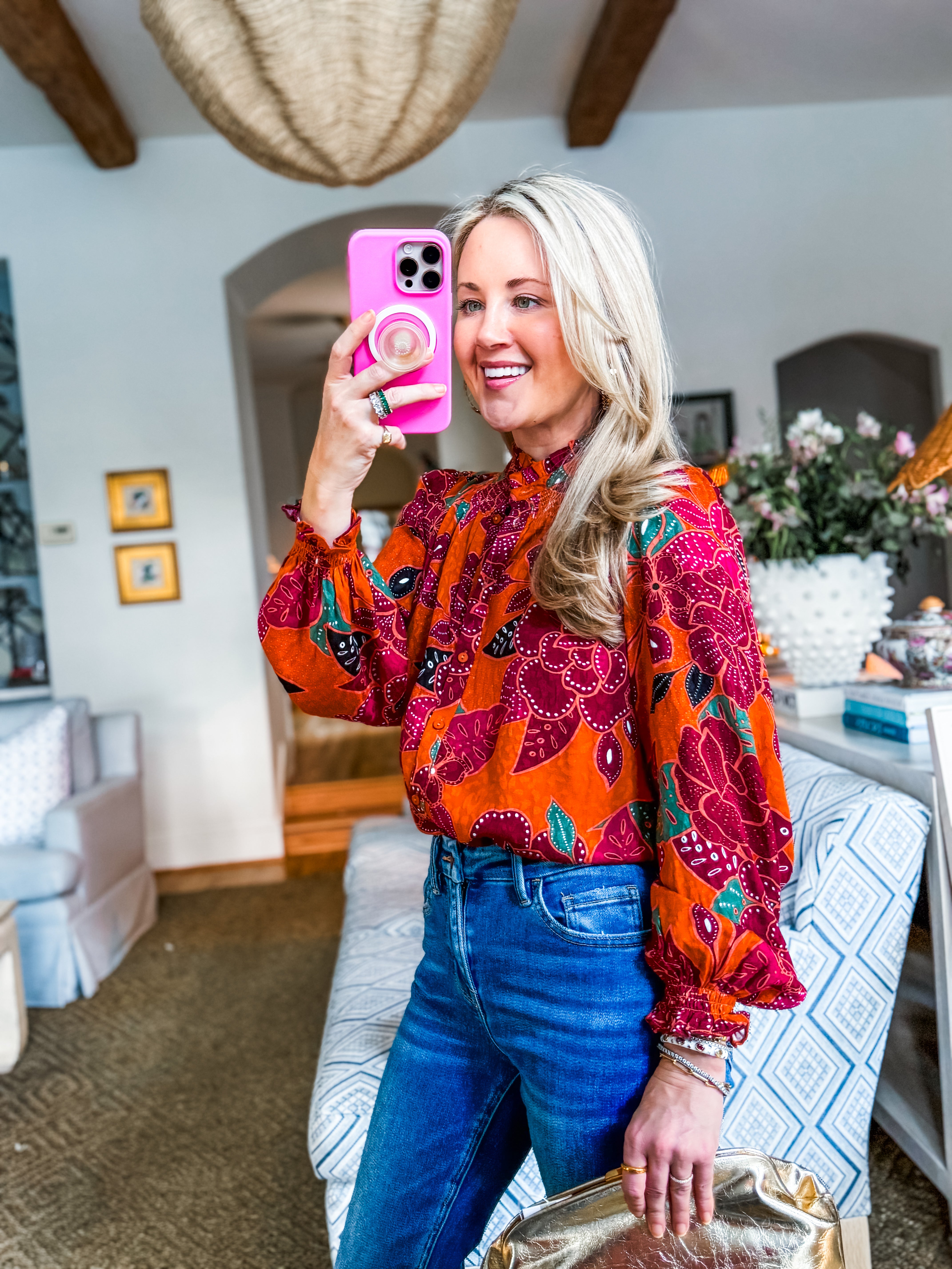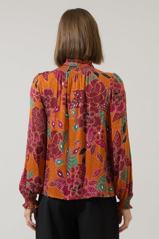 Marven Floral Top in rust and brown brings autumn vibes with its vibrant color and floral design. Featuring long sleeves, delicate ruffles, and a button-front closure, this top is effortlessly charming. Wear it loose or tuck it into high waisted pants for a laid back, fashionable outfit.
