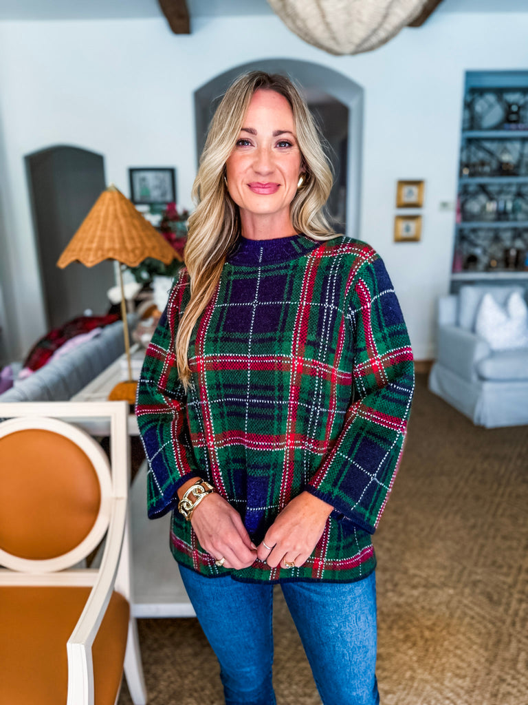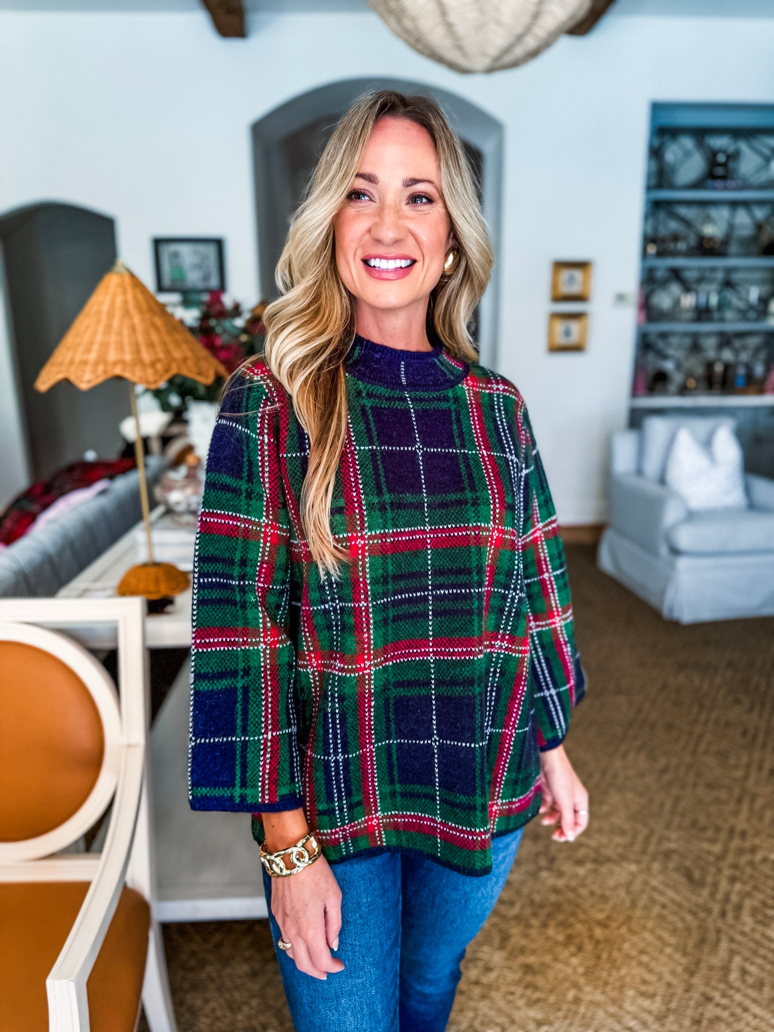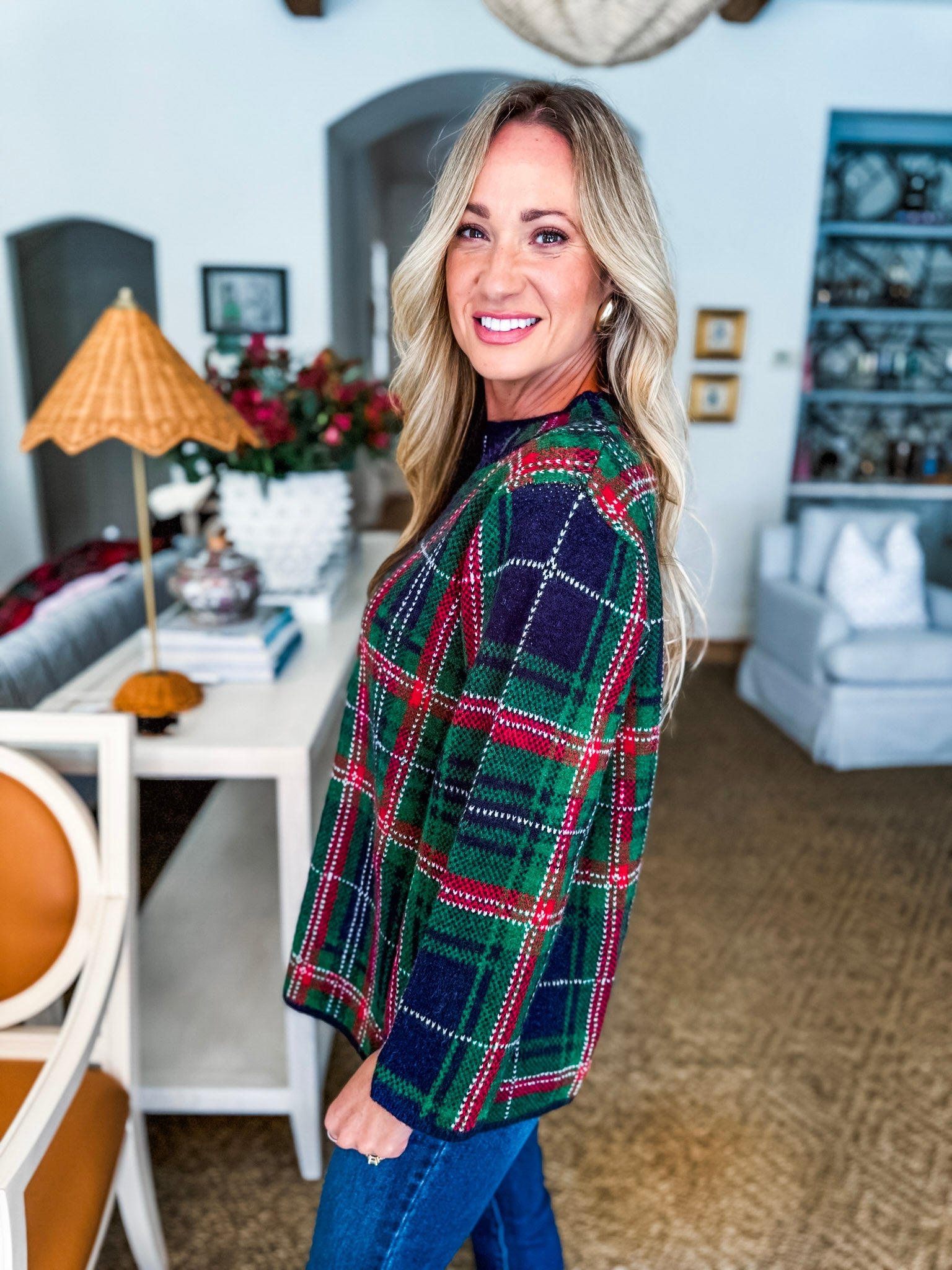 The Tree Topper Plaid Top in navy is cozy, classic, and just the right amount of festive. With its relaxed fit, mock neck, and soft knit feel, it’s perfect for chilly mornings at the office or casual weekend outings. The plaid pattern makes it easy to pair with jeans or tailored pants. Medium weight and comfy enough to wear all season long.