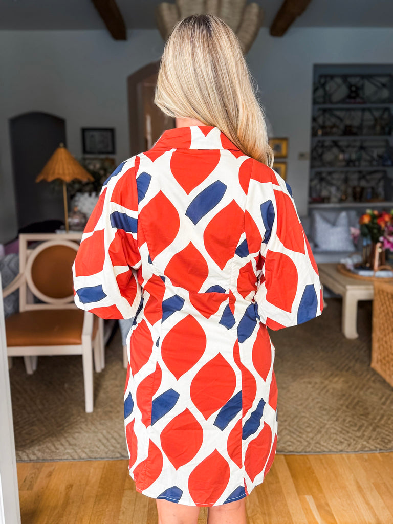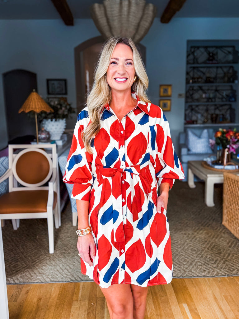 Bring a splash of color to your everyday with the Abstract Horizons Mini Dress in ecru and rust. The flowy 3/4 sleeves, shirt collar, and waist tie make it effortlessly feminine and flattering. Whether you're meeting friends for coffee or exploring a new city, this dress moves with you beautifully. Easy, breezy, and totally your new favorite.