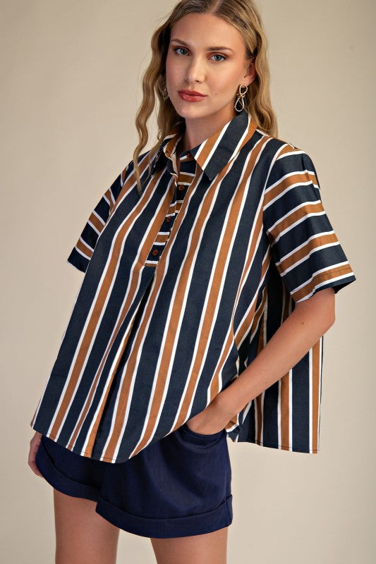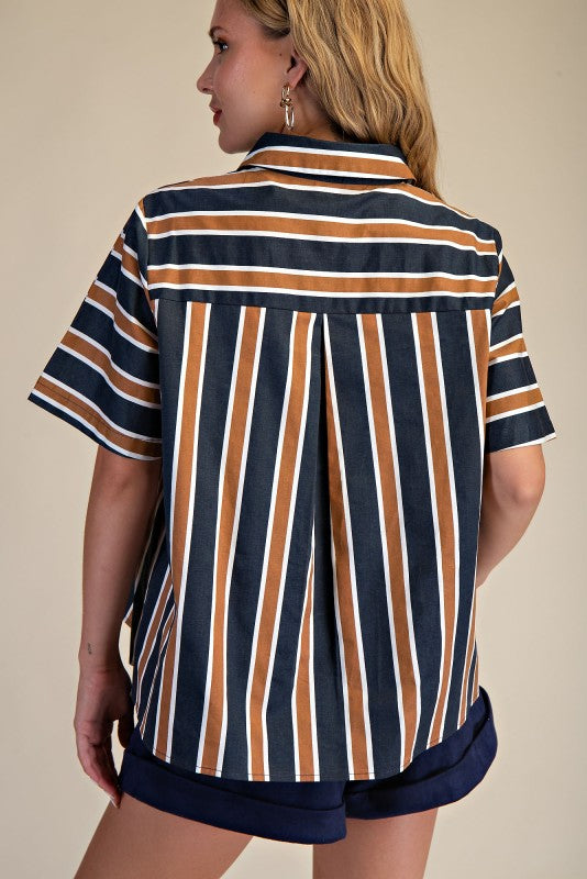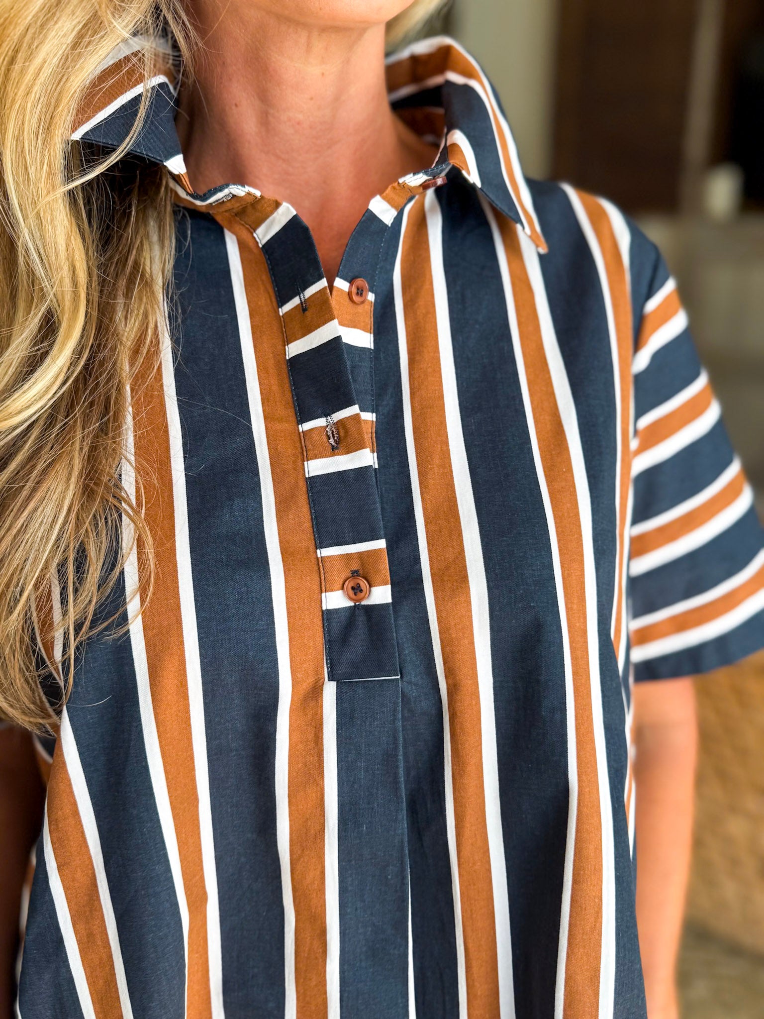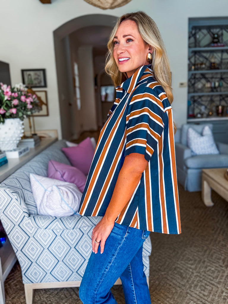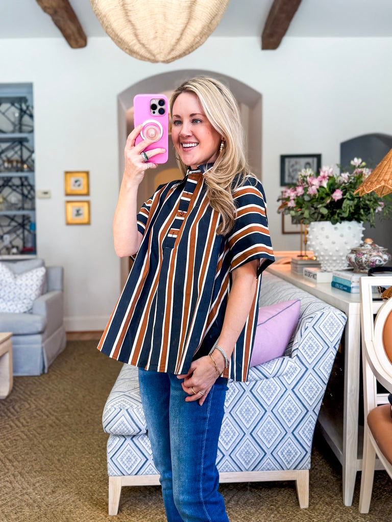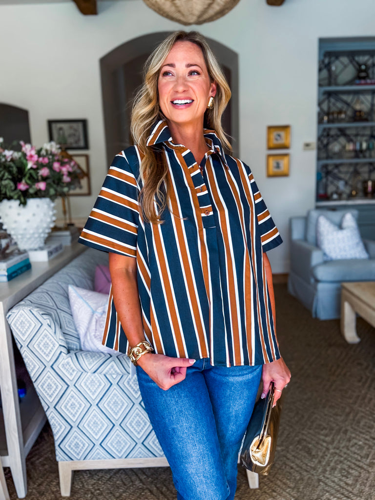 The Around the Block Top in brown keeps things cool, comfy, and totally stylish. This short sleeve shirt top is lightweight and perfect for warm afternoons, relaxed evenings, or weekend shopping trips. Its easy silhouette flatters effortlessly, giving you that pulled together look without even trying. A true everyday essential you’ll reach for again and again.