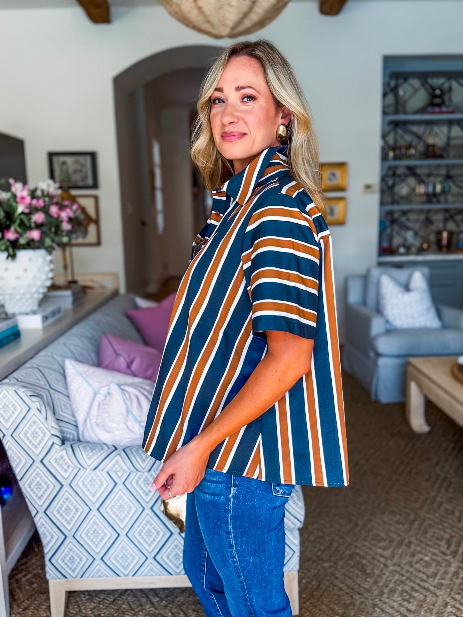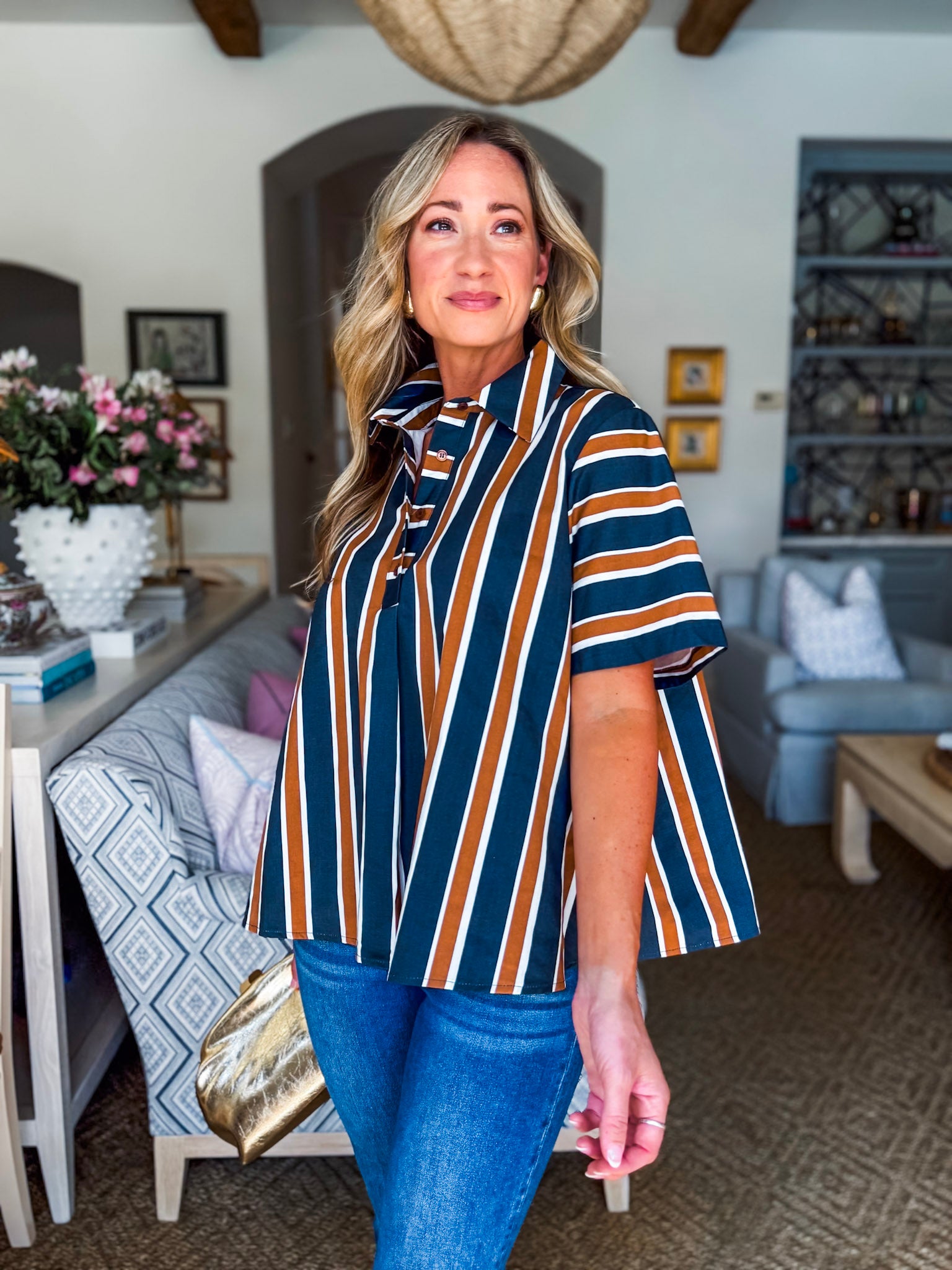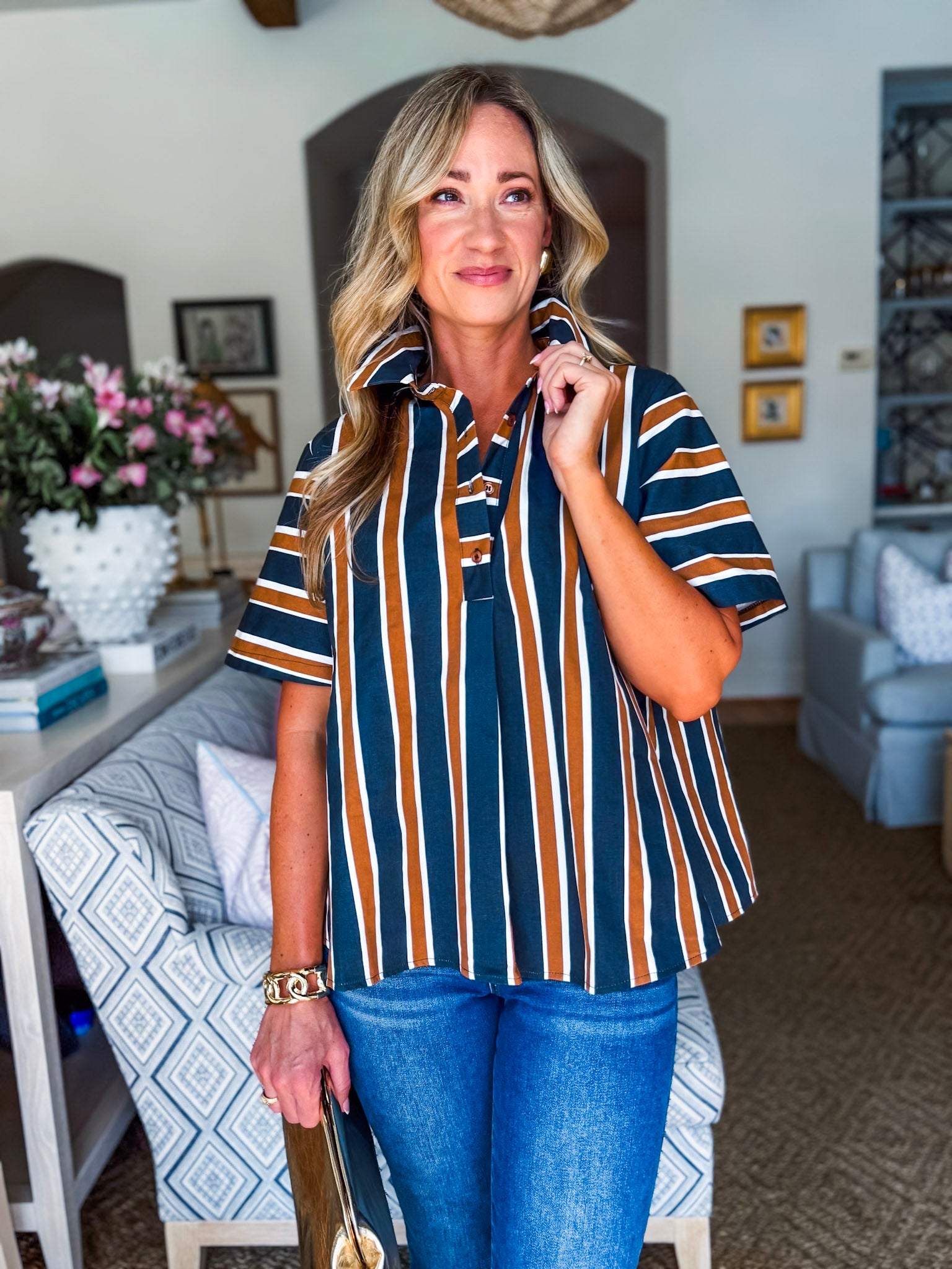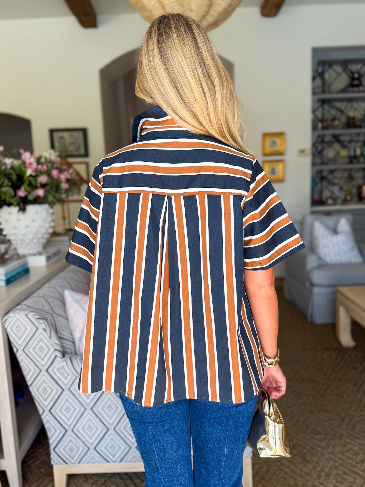 The Around the Block Top in brown keeps things cool, comfy, and totally stylish. This short sleeve shirt top is lightweight and perfect for warm afternoons, relaxed evenings, or weekend shopping trips. Its easy silhouette flatters effortlessly, giving you that pulled together look without even trying. A true everyday essential you’ll reach for again and again.