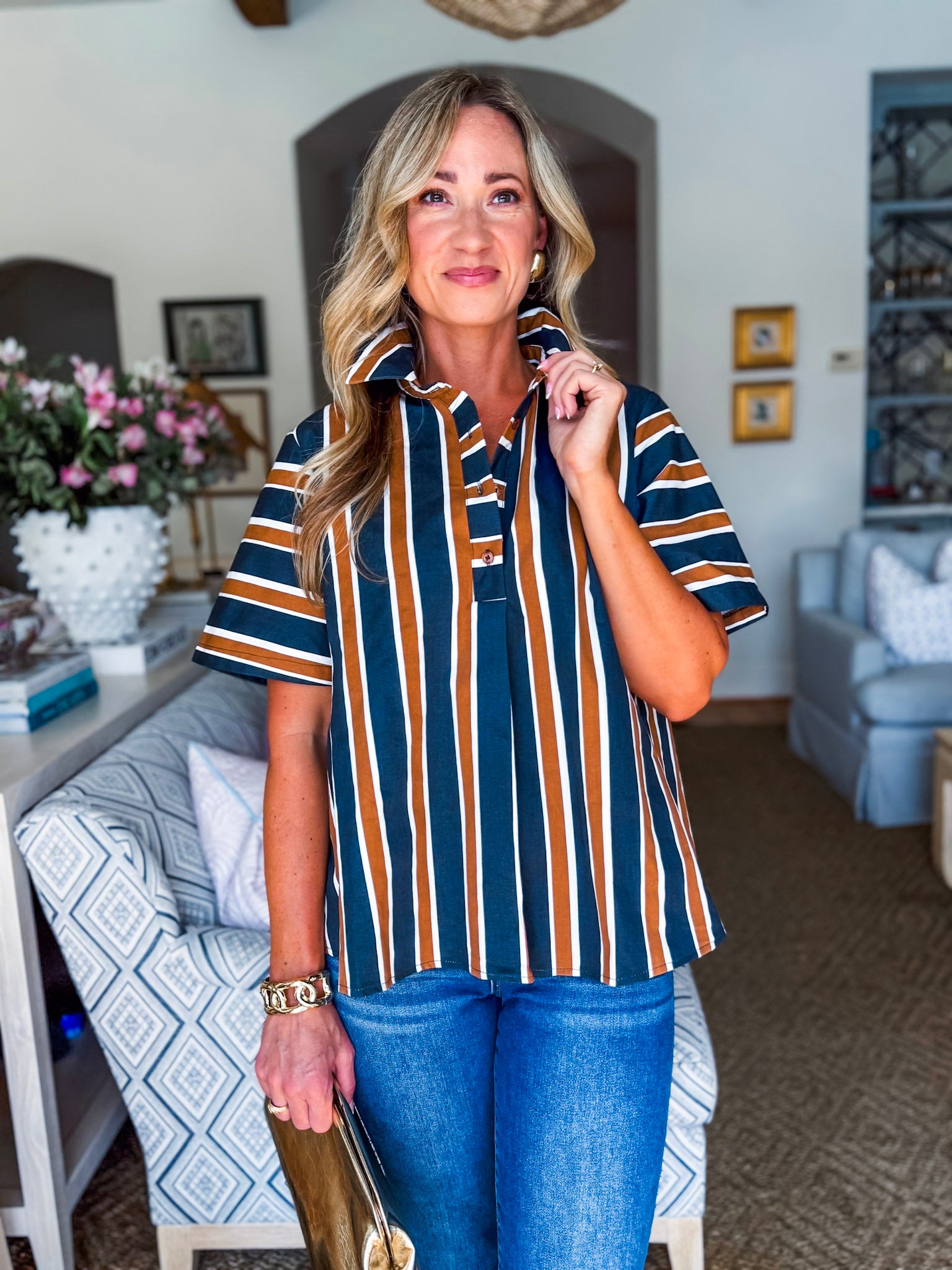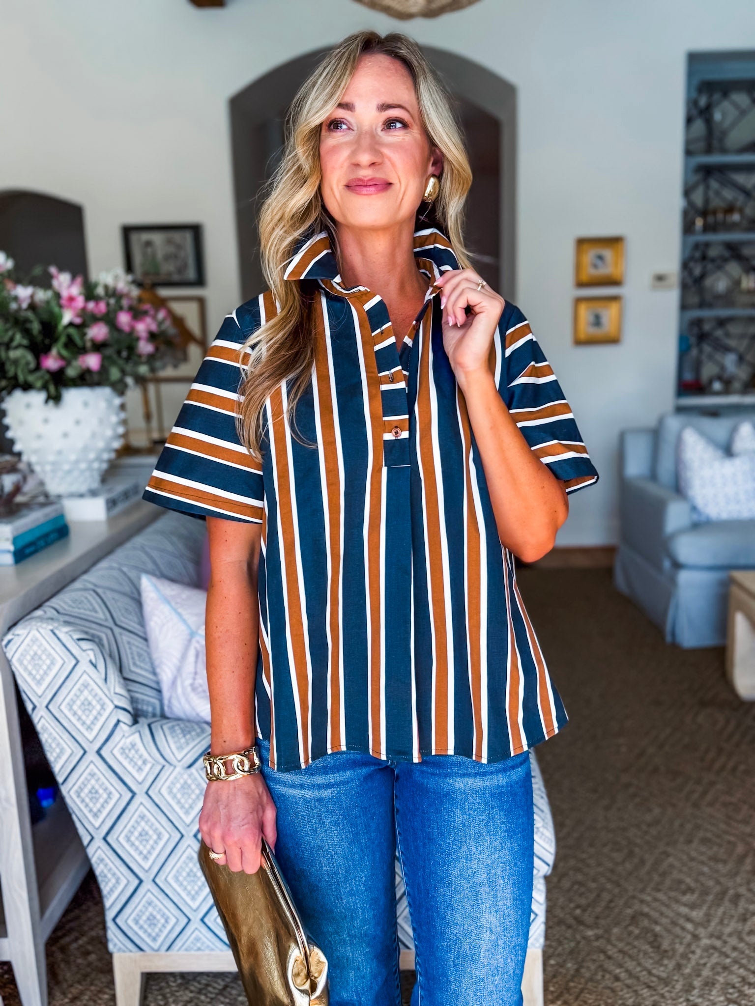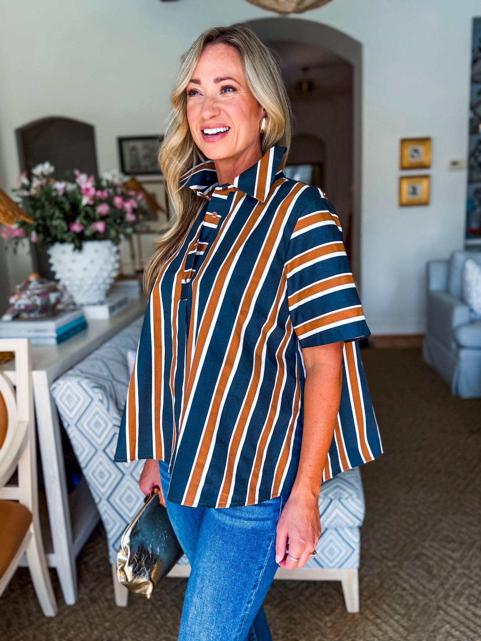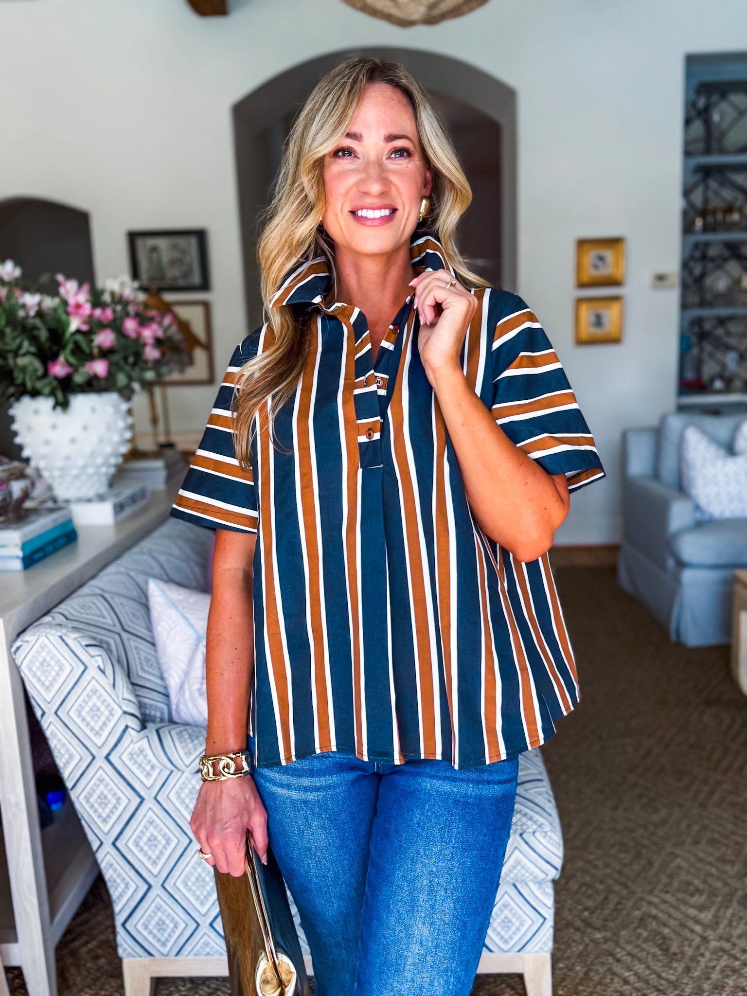 The Around the Block Top in brown keeps things cool, comfy, and totally stylish. This short sleeve shirt top is lightweight and perfect for warm afternoons, relaxed evenings, or weekend shopping trips. Its easy silhouette flatters effortlessly, giving you that pulled together look without even trying. A true everyday essential you’ll reach for again and again.
