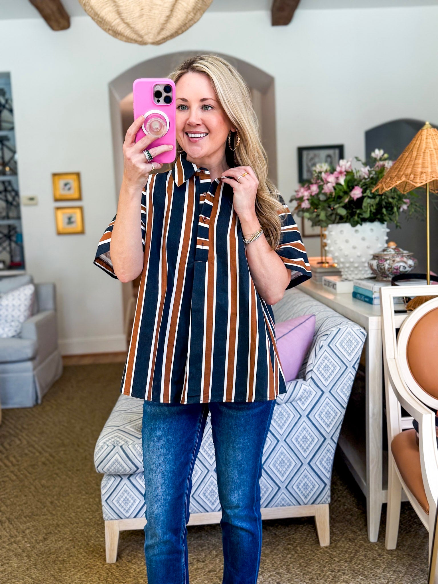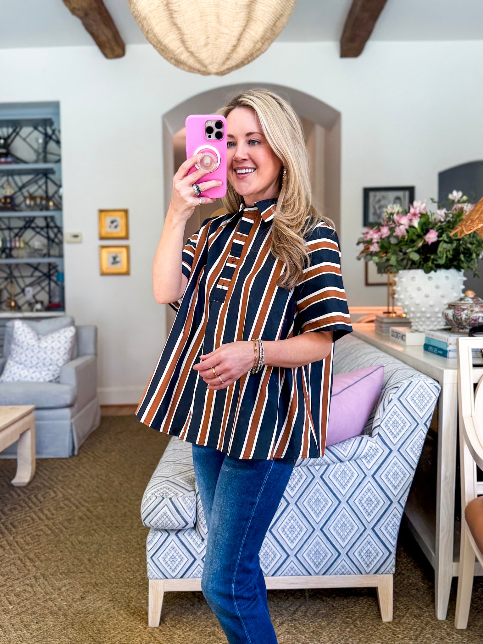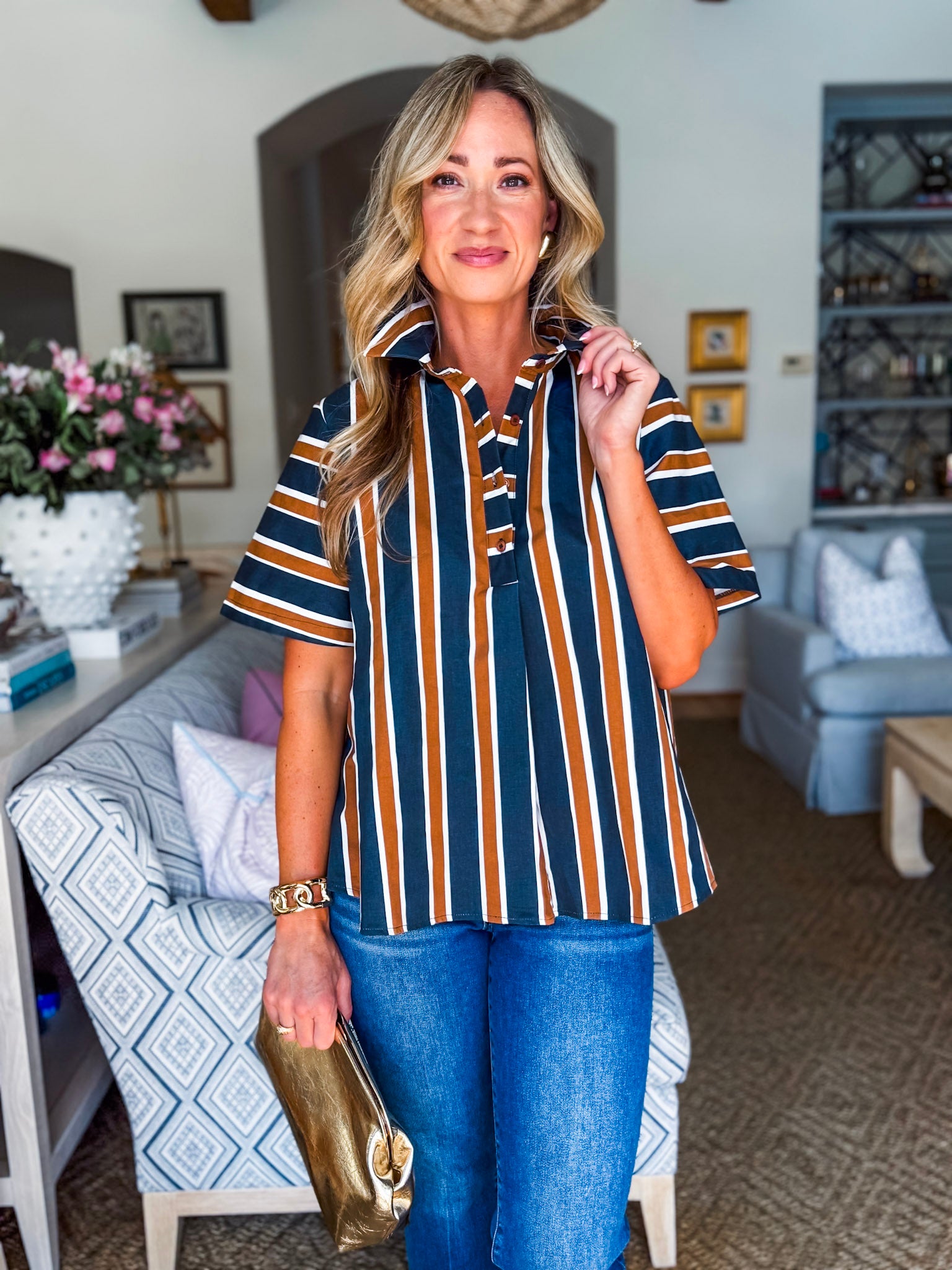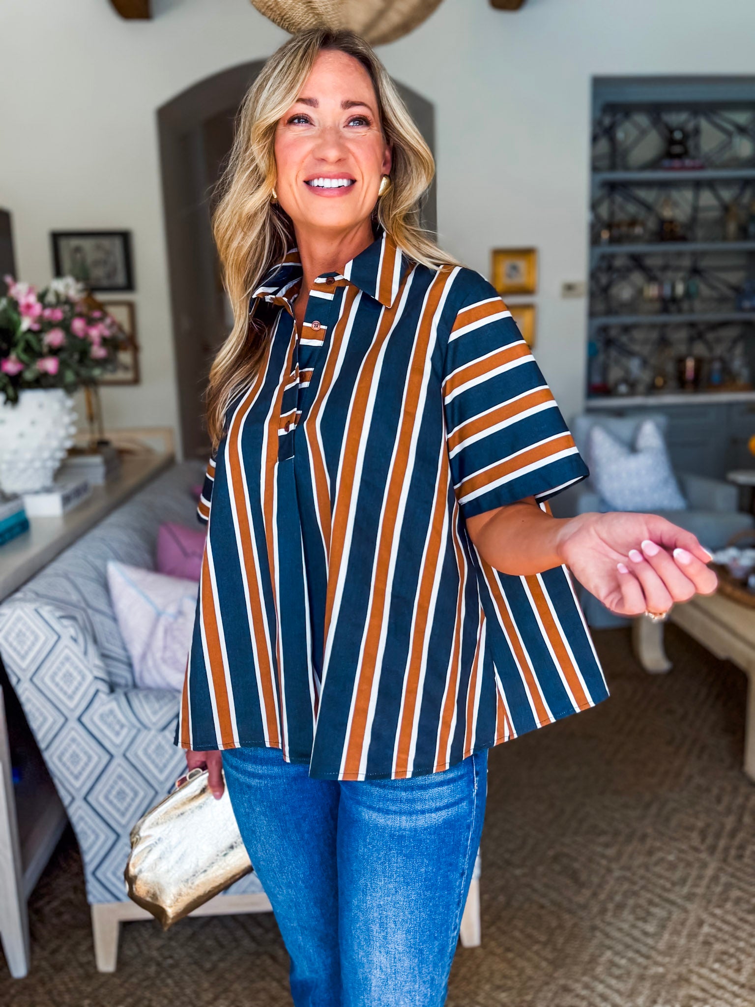 The Around the Block Top in brown keeps things cool, comfy, and totally stylish. This short sleeve shirt top is lightweight and perfect for warm afternoons, relaxed evenings, or weekend shopping trips. Its easy silhouette flatters effortlessly, giving you that pulled together look without even trying. A true everyday essential you’ll reach for again and again.