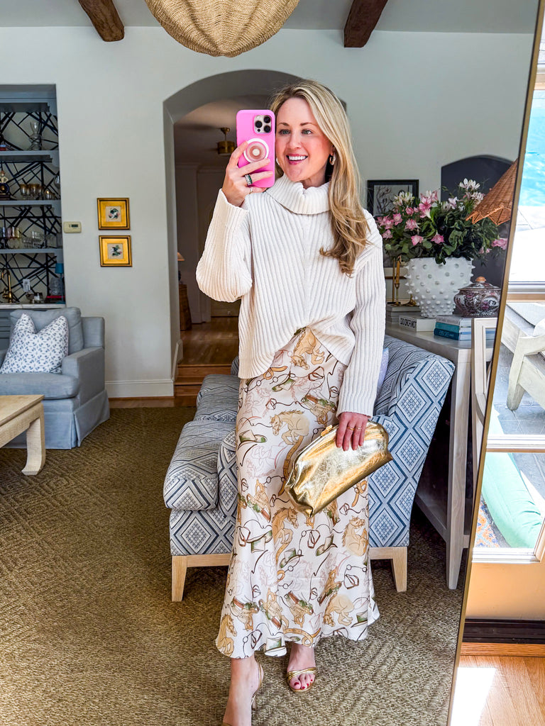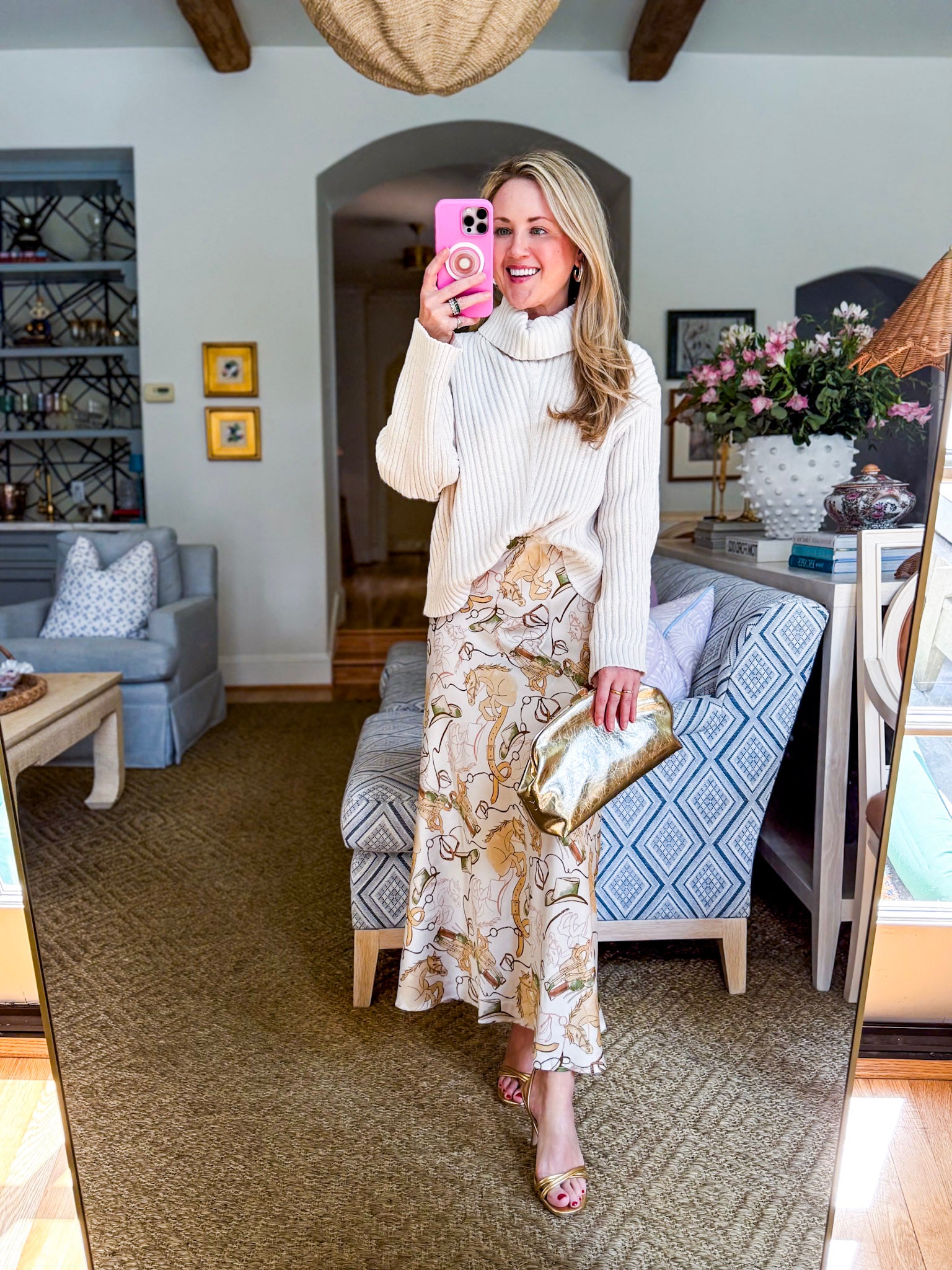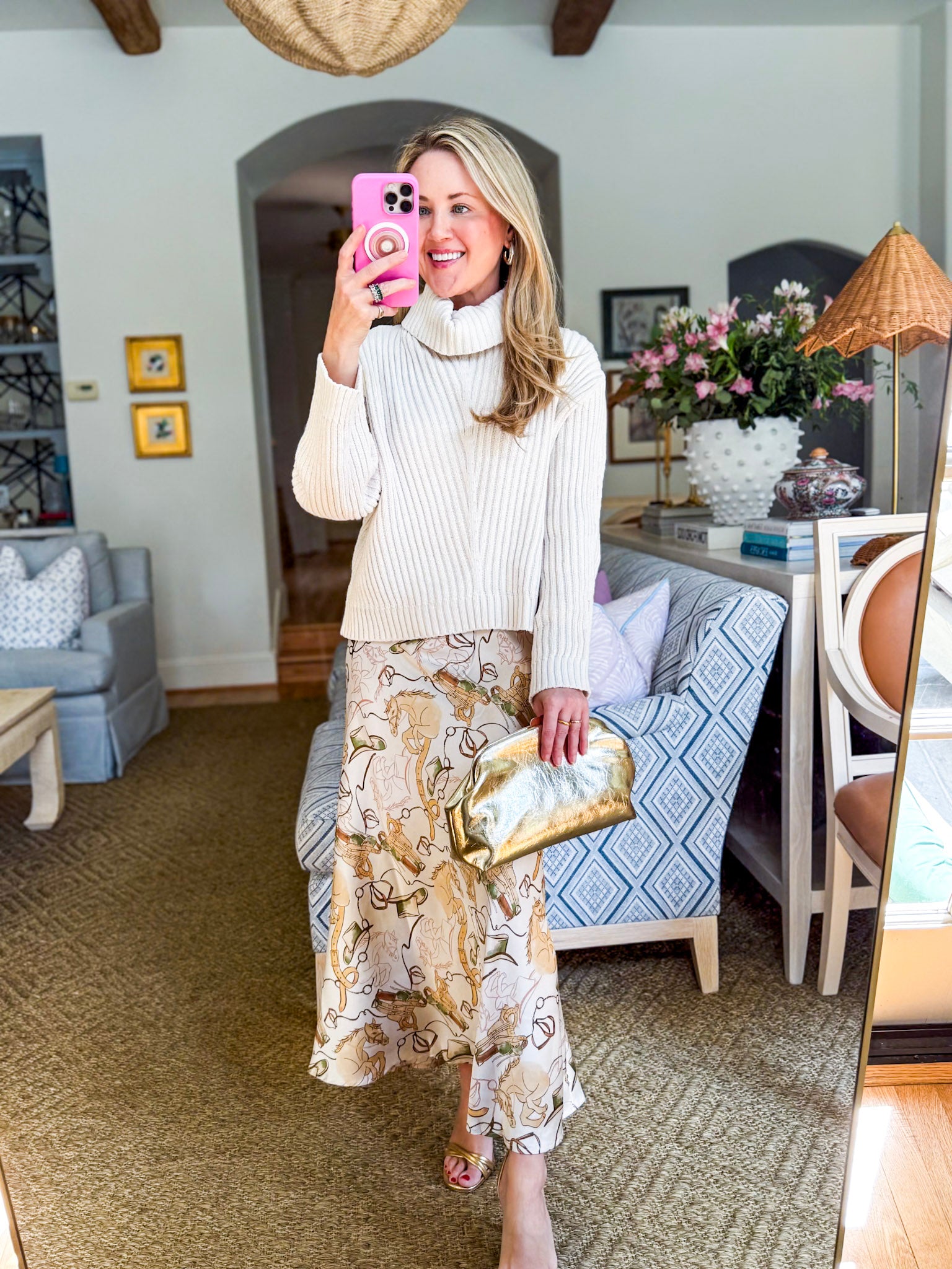The At the Roundup Midi Skirt in cream is where western charm meets everyday chic. With its satin-effect fabric and bold western print, this slip skirt adds just the right amount of flair to your look. The high-waisted fit and covered elastic waistband make it comfy enough for brunch dates or shopping trips. Pair it with a simple top and boots, and you’re ready for anything from brunch to weekend outings.
