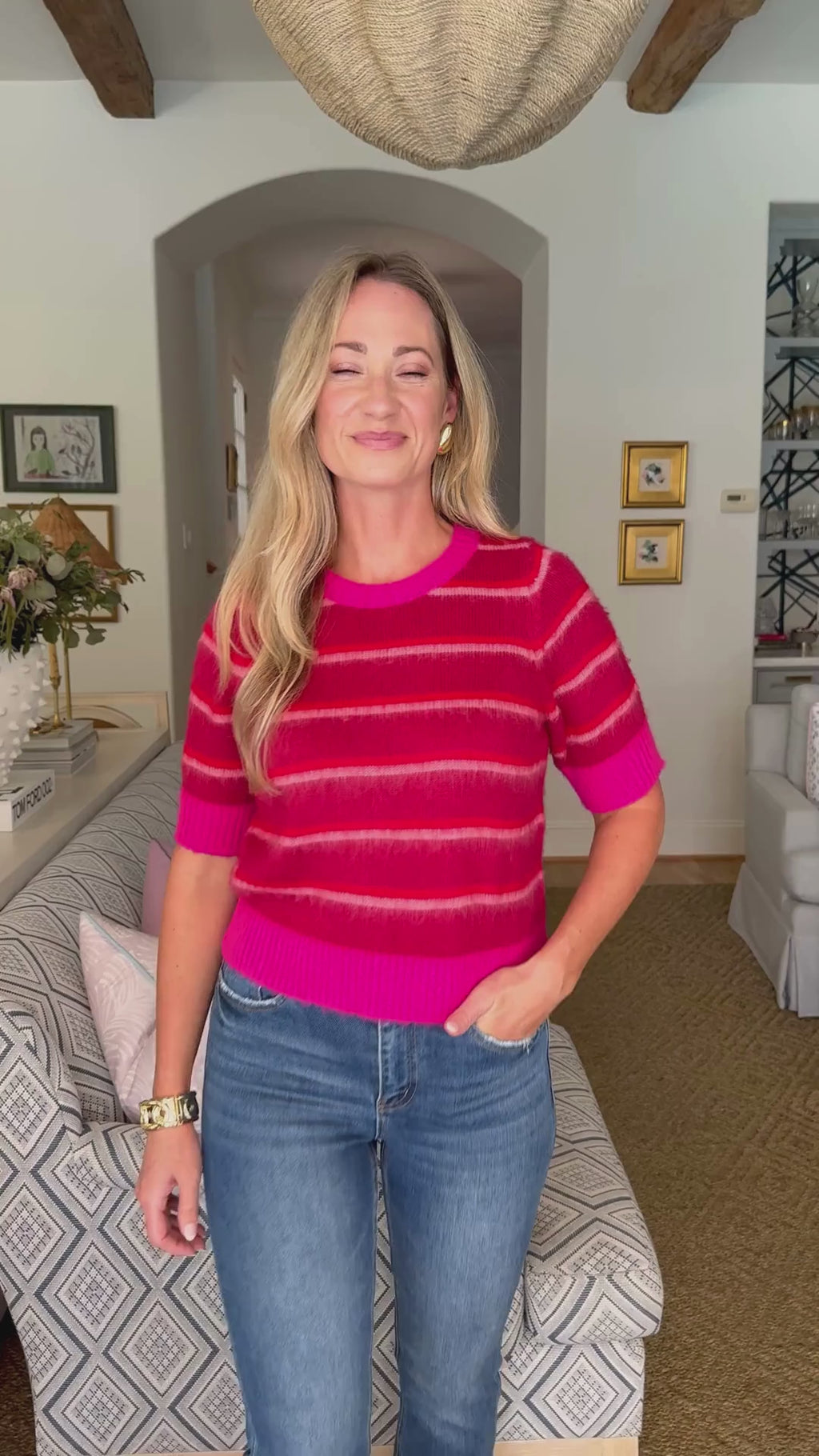 Add a pop of fun to your wardrobe with Avanti Stripe Sweater Top in burgundy! With its vibrant pattern, short sleeves, and flattering cropped fit. The soft texture keeps things comfy while the bold design turns heads. Style it with high-rise jeans, white sneakers, and a mini backpack for a fresh, playful look!
