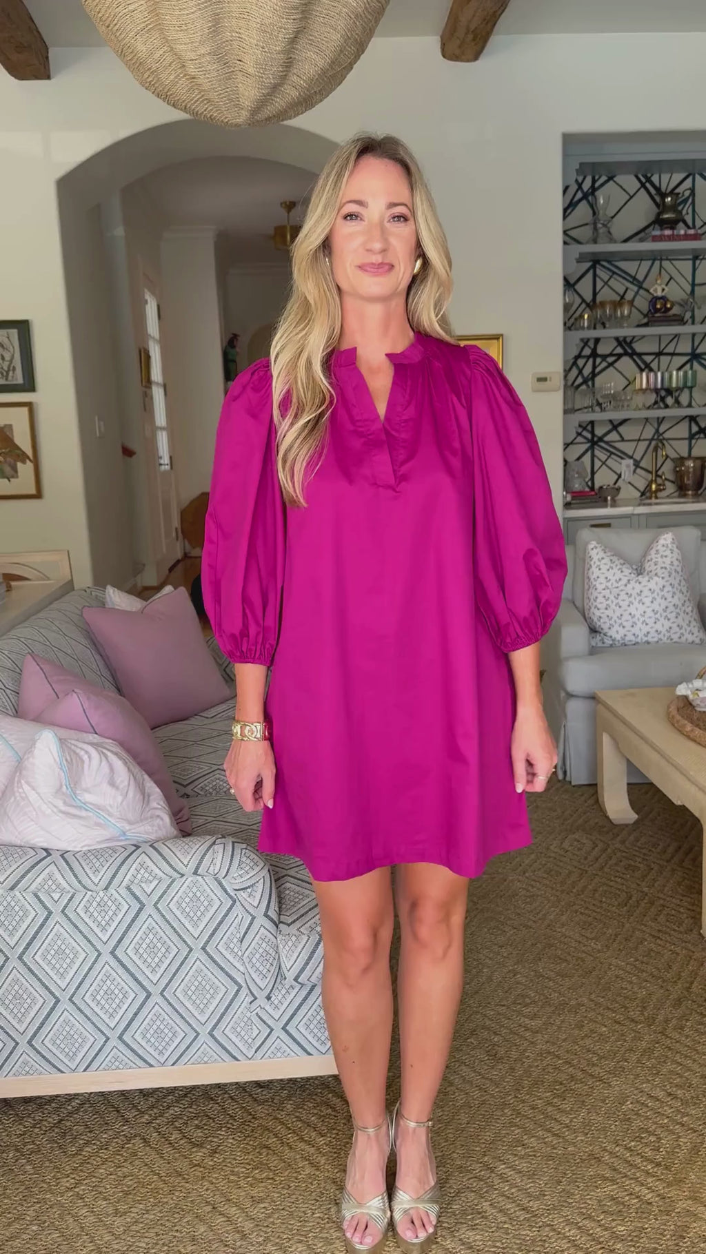 The Change of Season Dress in magenta is your new go-to for looking chic without trying too hard. With bubble sleeves, a mock neck, and a flirty mini length, it blends classic details with modern flair. Perfect for fall gatherings, date nights, or holiday dinners. Just add heels or boots and you’re set!