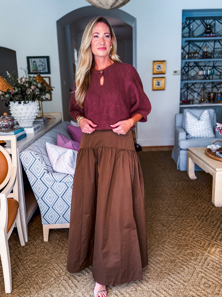 The Fit & Flare Maxi Skirt in mocha brings classic femininity with a modern twist. Designed in an A-line shape with a smooth side zip, it flatters and flows in all the right ways. Perfect for coffee runs, dinner plans, or Sunday strolls. You’ll feel effortlessly confident wherever you go!