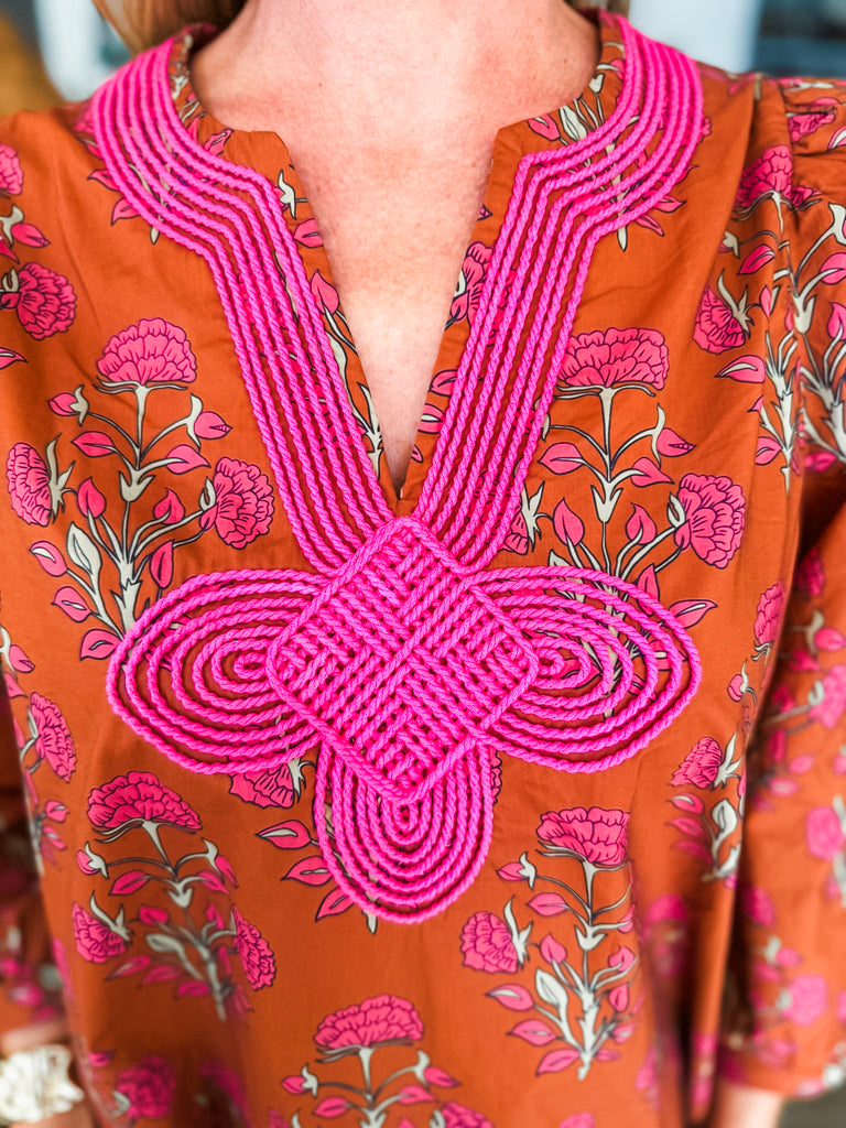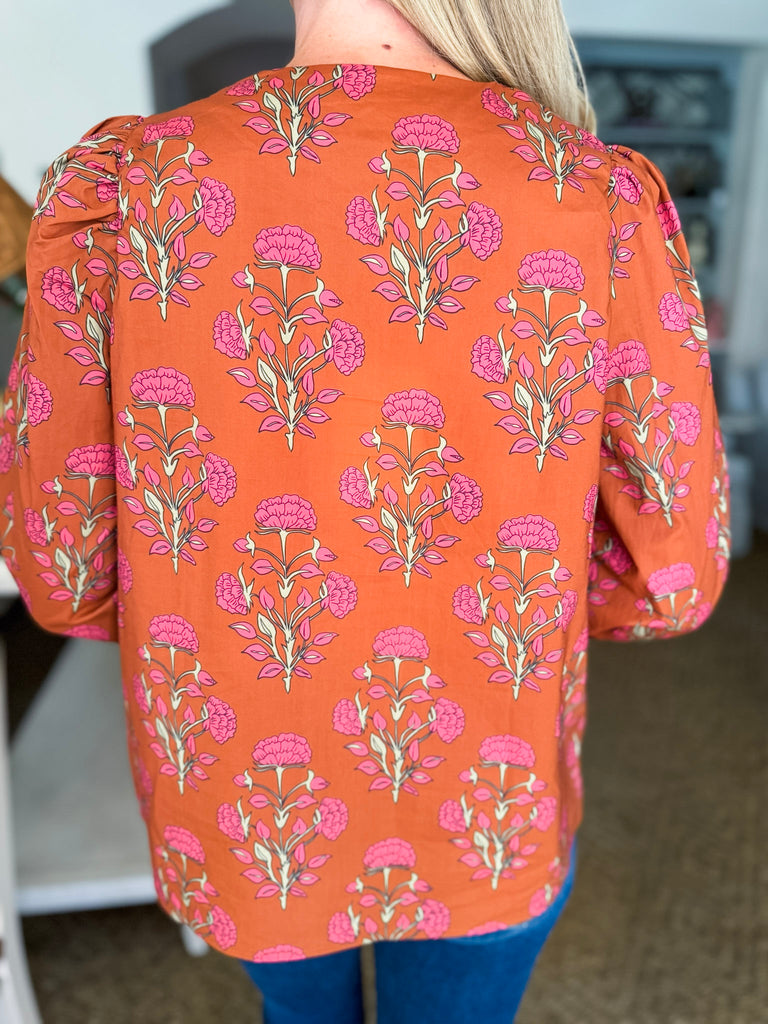 Fall in love with the flirty details of the Midtown Florals Top in brown. The floral print and puff sleeves make it sweetly romantic, while the embroidered V-neck gives it that boutique touch. It’s comfy enough for everyday wear but dressy enough for dinner plans. Style it with your favorite denim or midi skirt for an effortlessly chic look.