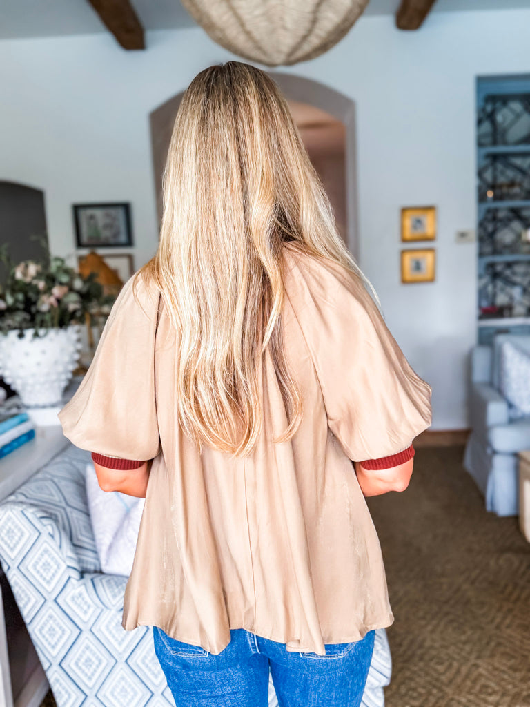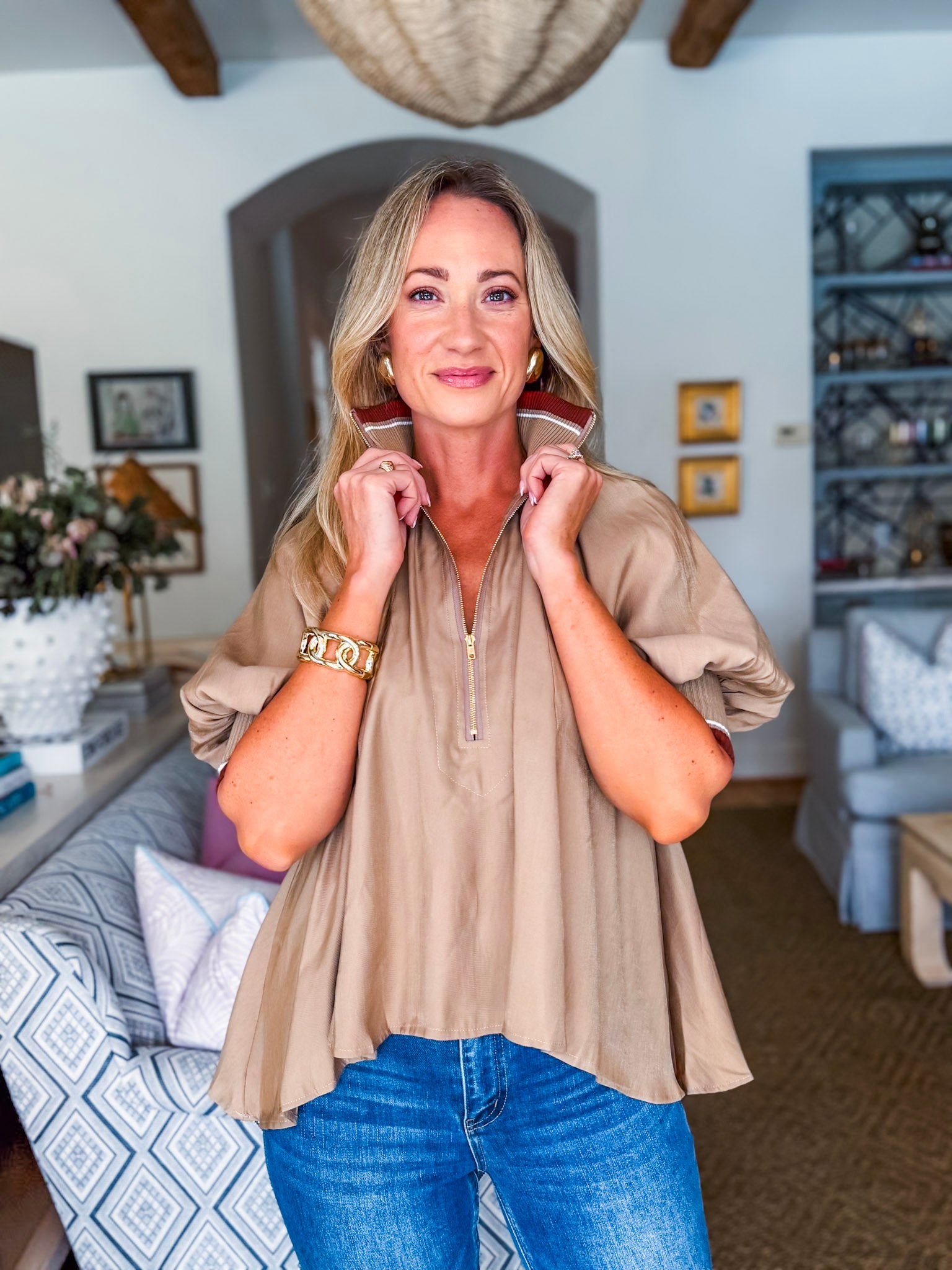 We’re obsessed with the Study in Style Half Zip Top in taupe — it’s classic meets cool! The puff sleeves bring a touch of femininity, while the mock neck keeps it fresh and refined. Perfect with denim for errands or with slacks for a dressier feel. This one’s an instant outfit-maker.