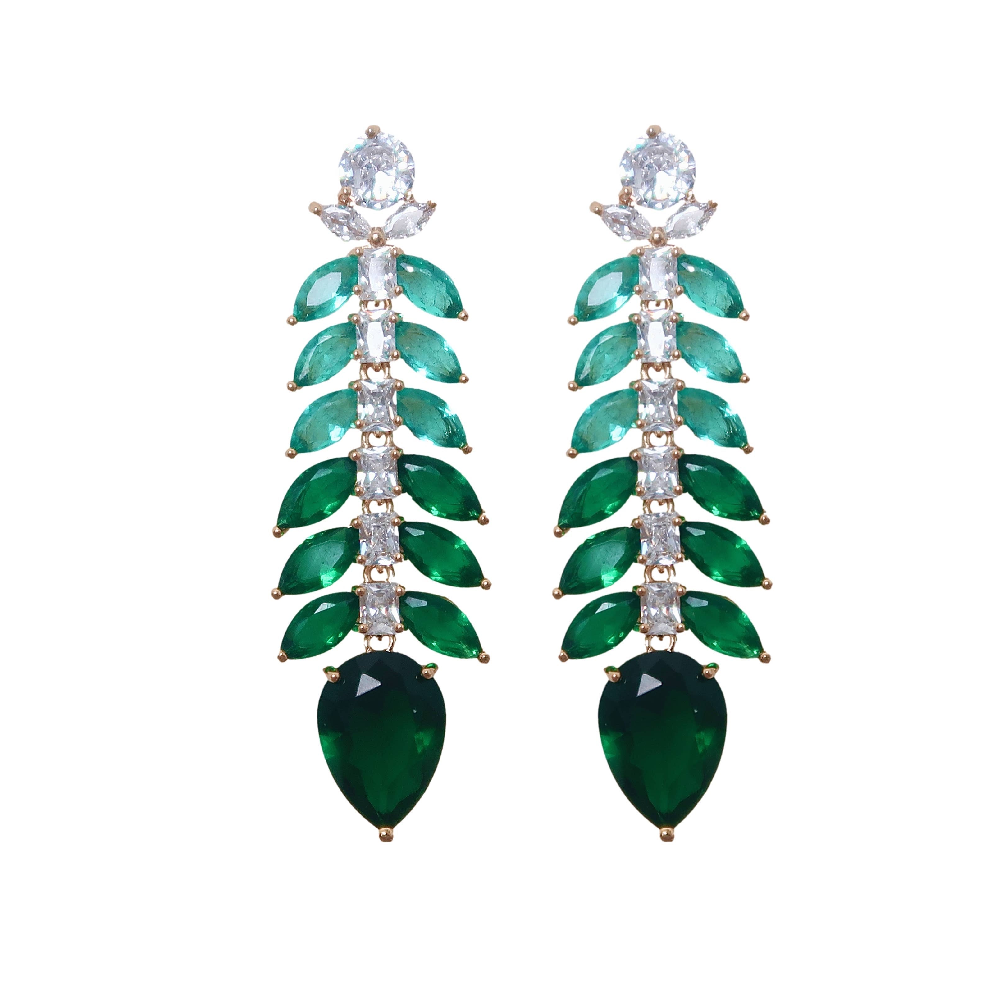 These Christmas and holiday statement earrings feature sparkling white crystals with a striking emerald green teardrop accent. With a 2" length and elegant marquise cluster design, they’re perfect for festive occasions, from Christmas to New Year’s Eve.