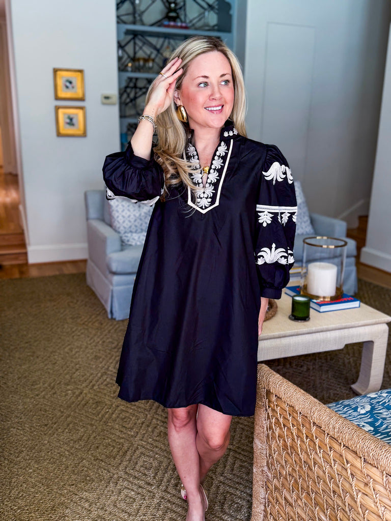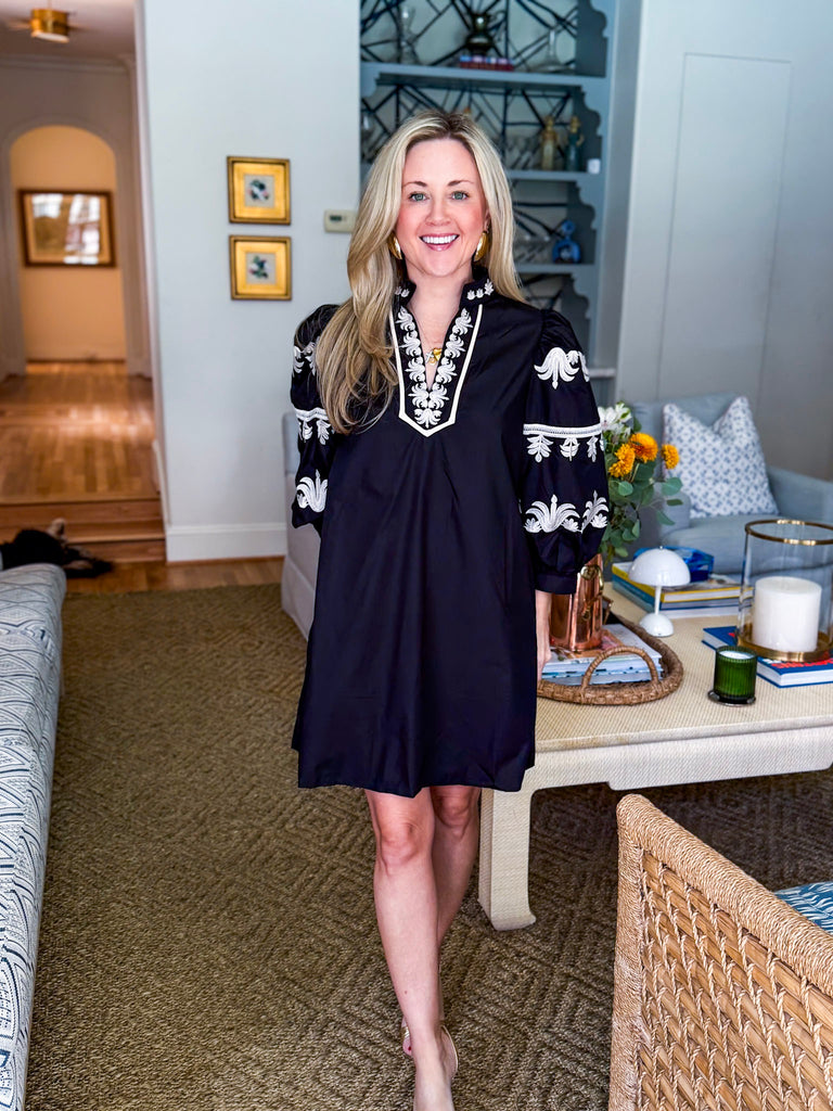 I purchased the dress in Teal in a Small and it is super cute on! I think it also comes in white and navy but the Teal is the cutest. It fits really well! I usually wear a 6 or 8 and have a substantial bust so I usually end up getting a medium. But this dress the small was perfect for me! It’s very flattering on and not too long (I’m only 5ft 2in). The color is gorgeous and I think it would look great on multiple body types.