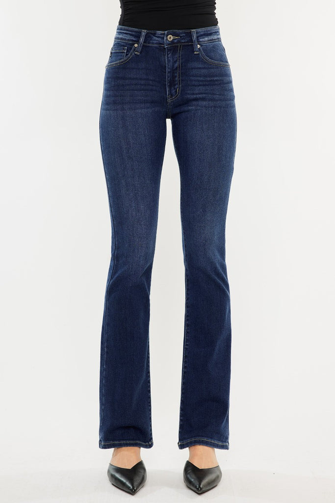 Features: Open Pack High Rise Bootcut Jeans, Dark wash, stretched, non distressed, 5 pocket style, zipper fly