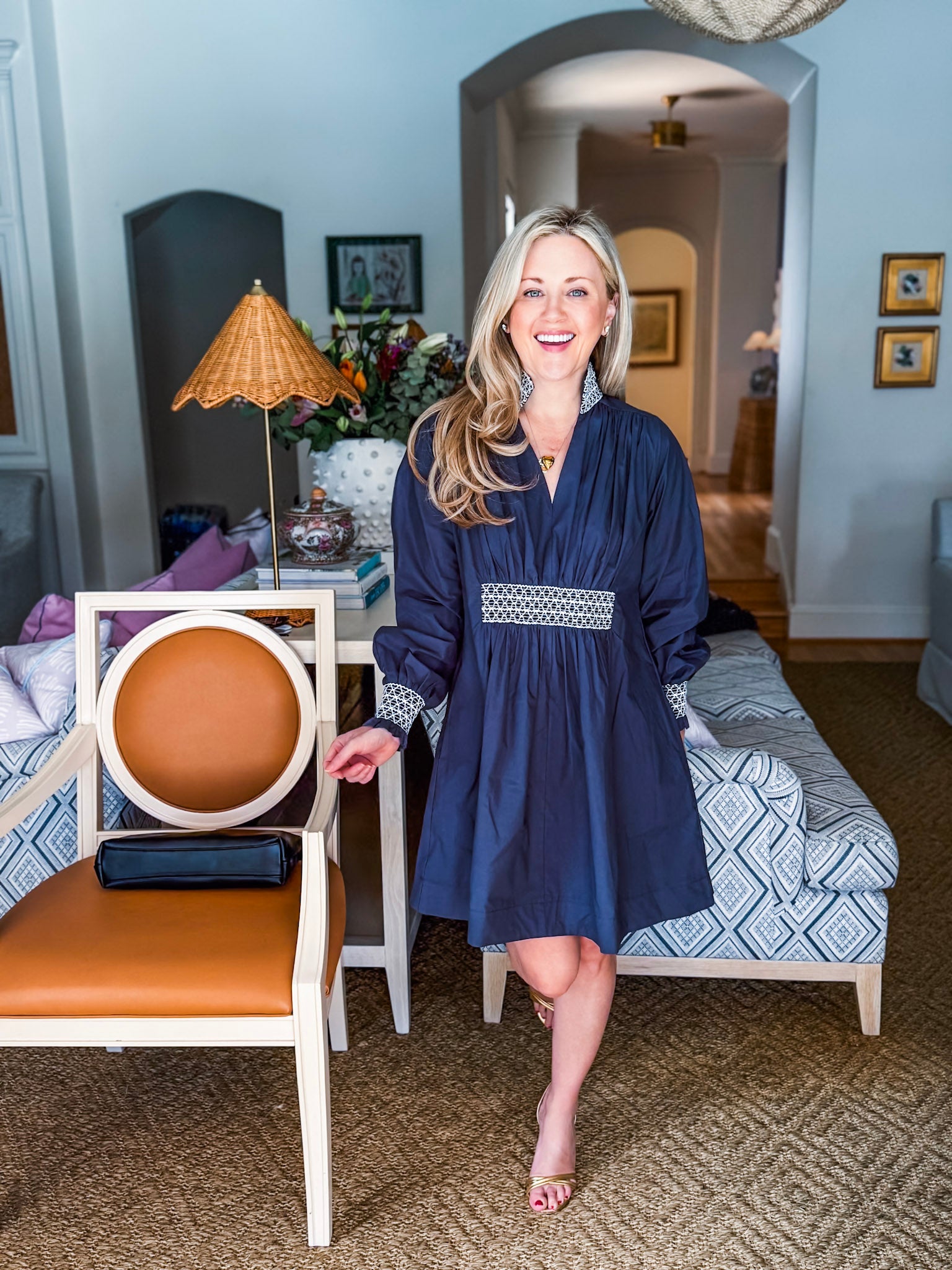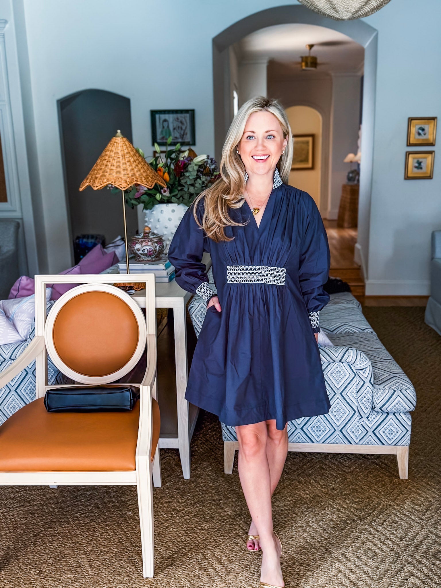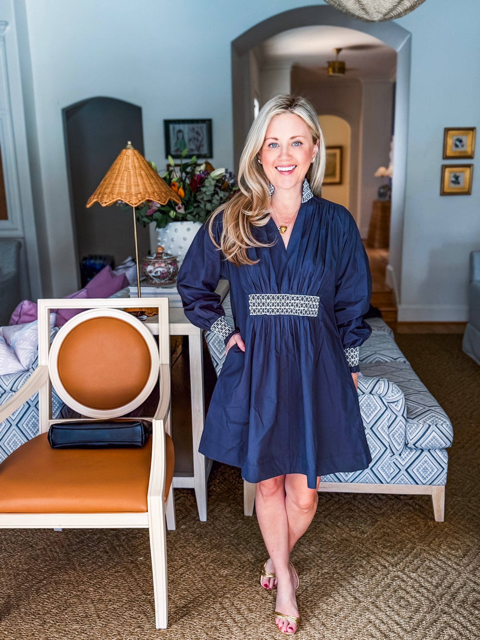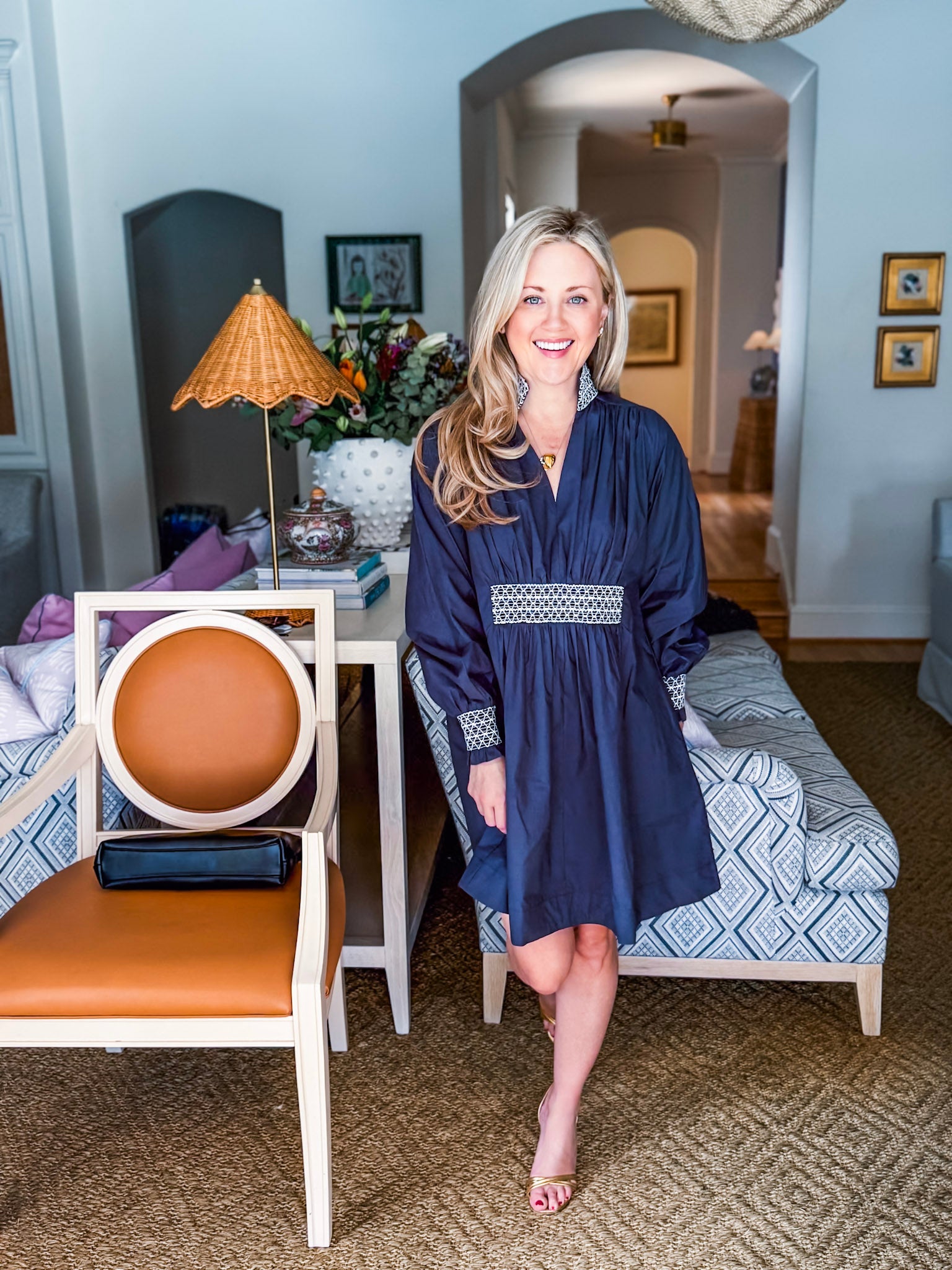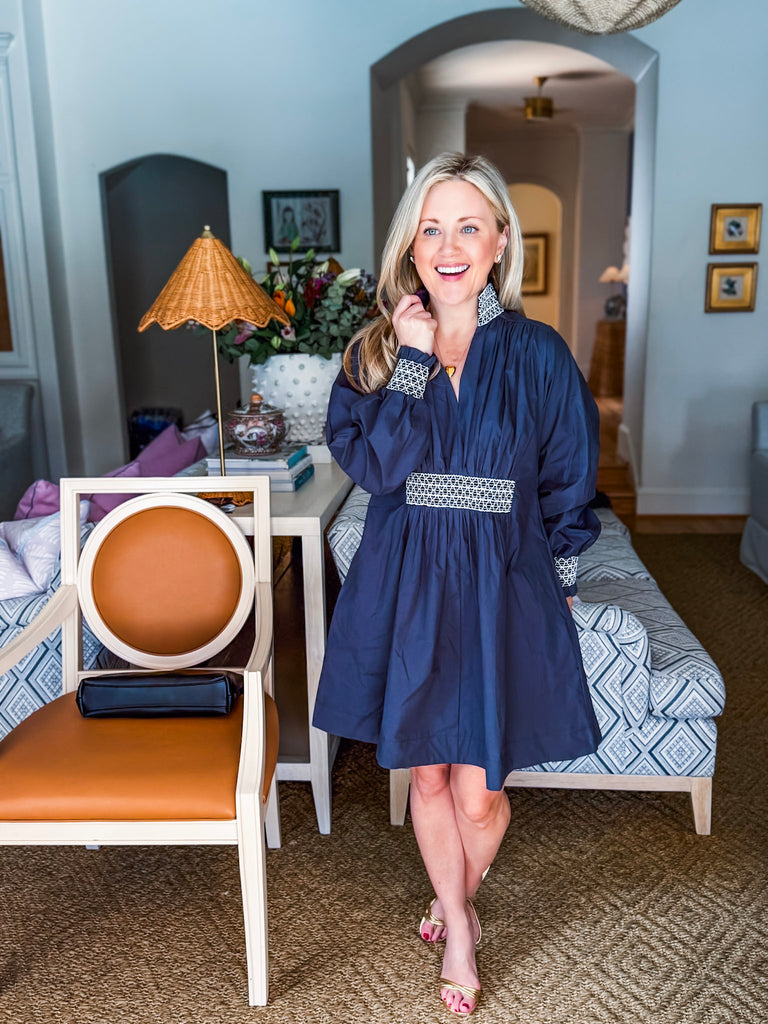 I purchased the dress in Teal in a Small and it is super cute on! I think it also comes in white and navy but the Teal is the cutest. It fits really well! I usually wear a 6 or 8 and have a substantial bust so I usually end up getting a medium. But this dress the small was perfect for me! It’s very flattering on and not too long (I’m only 5ft 2in). The color is gorgeous and I think it would look great on multiple body types.