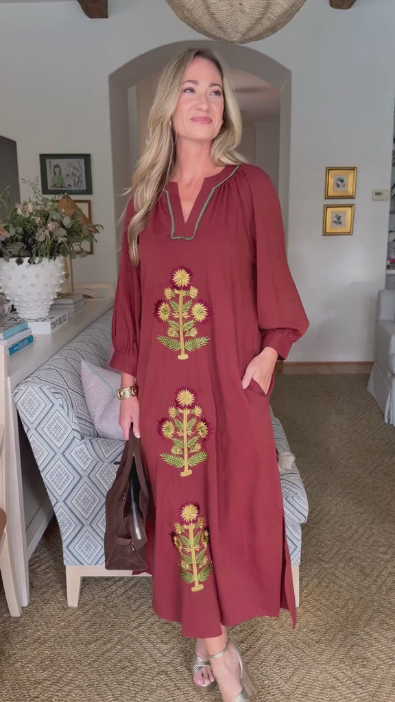 Sunflower Fields Embroidered Maxi Dress-Chestnut